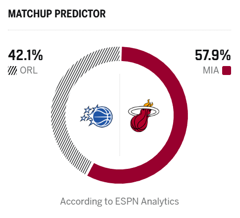 ESPN预测明日比赛:热火胜率57.9%,魔术胜率42.1%