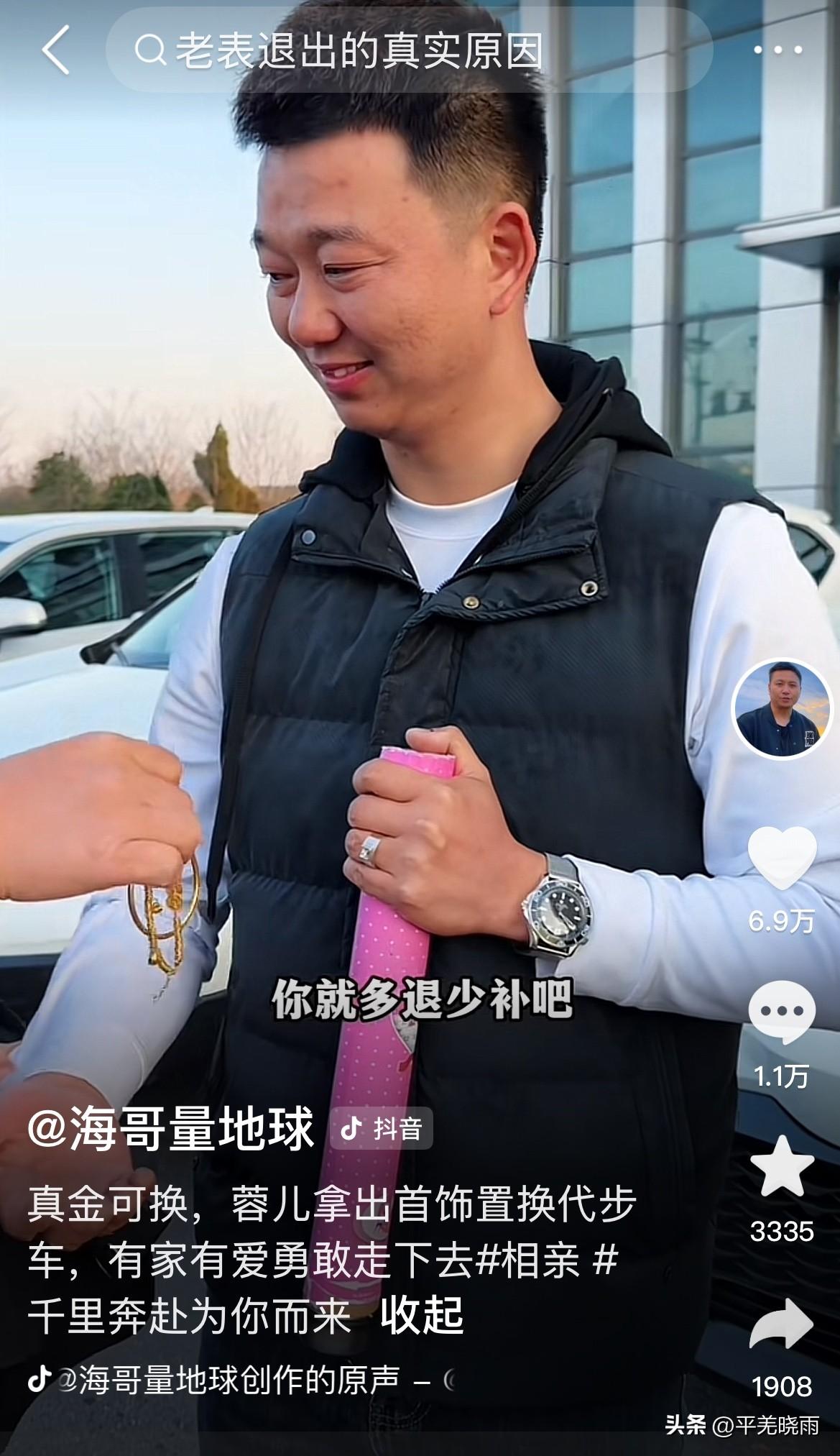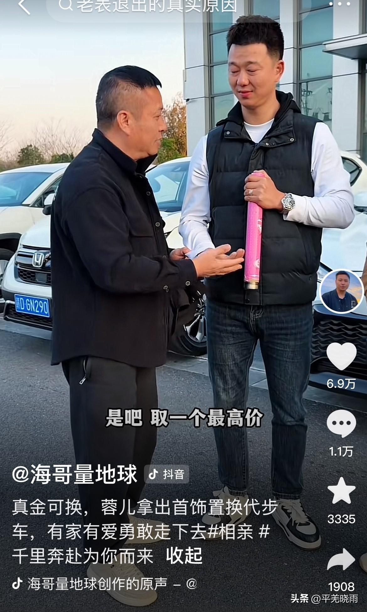 大表哥这表情,简直生无可恋,就算哭晕在厕所都不敢大声! 大表哥做梦都想不到,自己经营的二手车公司,竟有顾客拿着金手链来买车。他满心委屈,还得点头哈腰笑着说:“随便给点就行啦!”哈哈哈… 一辆二手丰田越野,五万多,价格确实实惠! 据说金首饰价值七万多,可把大表哥乐坏了! 蓉儿和阿豪这下也是有车有房的人了,一下子就超过了许多普通人! 只要海哥出手,就没有办不成的事! 阿豪考驾驶证的费用还是海哥赞助的。 大表哥会不会直接把车送给蓉儿呢?毕竟他这么大的老板,怎么好意思收女人的首饰!@海哥量地球
