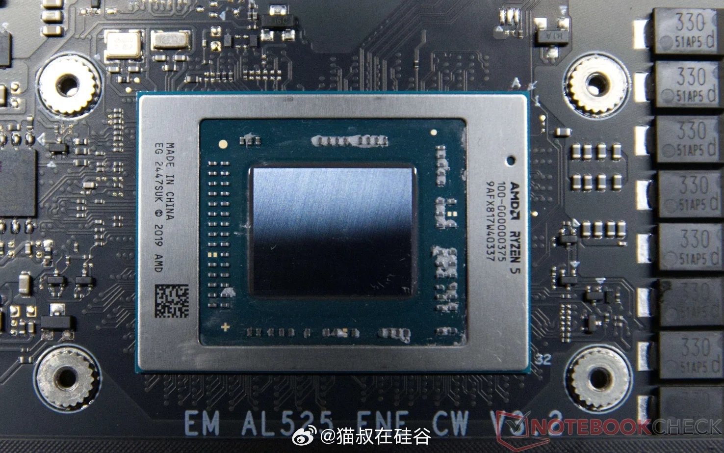 更令人震惊的是,驰为并非简单标注错误,而是通过固件层面(firmware level)的修改进行伪装:在BIOS、Windows系统信息、CPU-Z、HWiNFO等常用检测工具中,处理器均显示为Ryzen 5 7430U,甚至连包装盒贴纸和产品宣传也与之匹配。只有拆机移除散热器、查看芯片上的真实OPN编号(100-000000375)才能确认是5500U。这种深层欺骗手段让普通消费者几乎无法通过软件察觉。