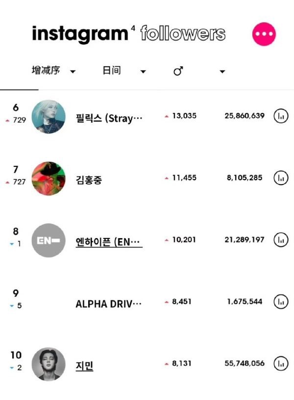 李龙馥动不动ins涨粉数上升七百多名闹麻了 能不能像黄铉辰一样一直在前面