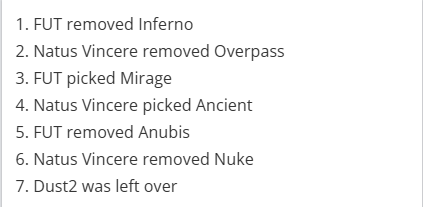 FUT禁用Inferno,NaVi禁用Overpass