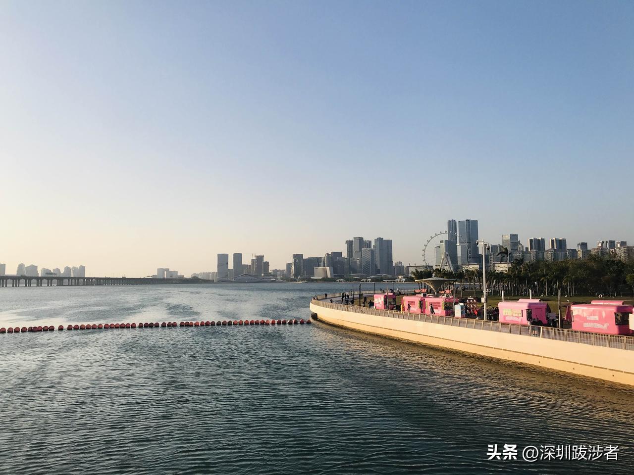 在深圳前海跑业务最爽的时刻,莫过于忙完事后沿着海湾一连串公园的路回家。 迎面而来的悠悠海风拂去了一身的疲惫,夕阳光照射在湛蓝的海面上,偶尔跃起一两条银白色的鱼,简直如同漫步在童话世界里。 @深圳跋涉者 在千万个深圳人中,能够享受到这种幸福感爆棚生活的,除了有一双发现美的眼睛,还要有一颗热爱大海的心。 我就是这样的人,一年四季,差不多每个周末,我都会去海湾逛一逛,总是会遇到不乏新鲜的人或事;有时拿着一本保罗·索鲁的游记,在欢乐港湾二楼麦当劳的旁边,靠着那条长长的躺椅,翻一会儿书,眯一会儿。 海就在两百多米的地方,缓缓的潮流。它与江河不一样,狂放不羁,仿佛永远难以驯服。现实中再多的落寞与失意,在这样深邃神秘的力量世界面前,也变得释然,豁然开朗了不少。