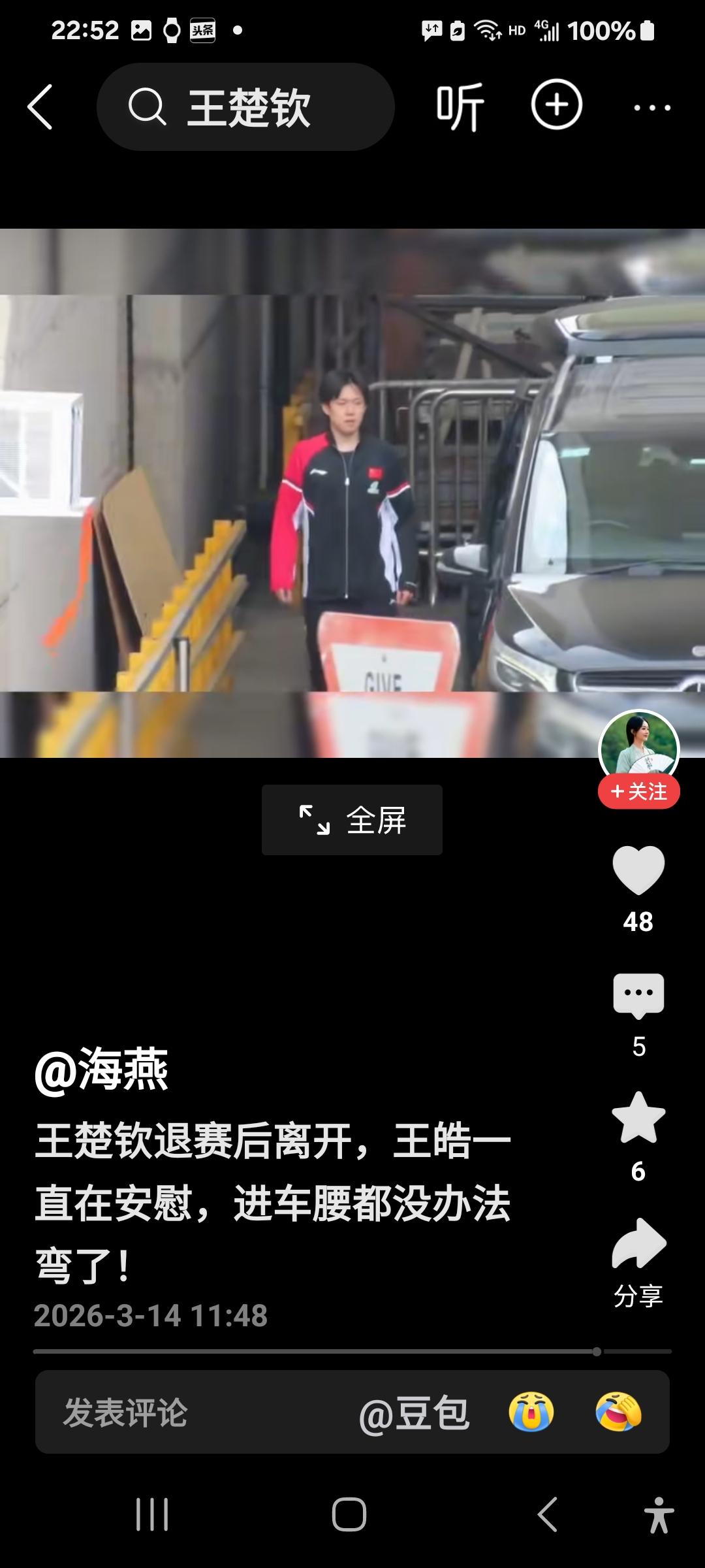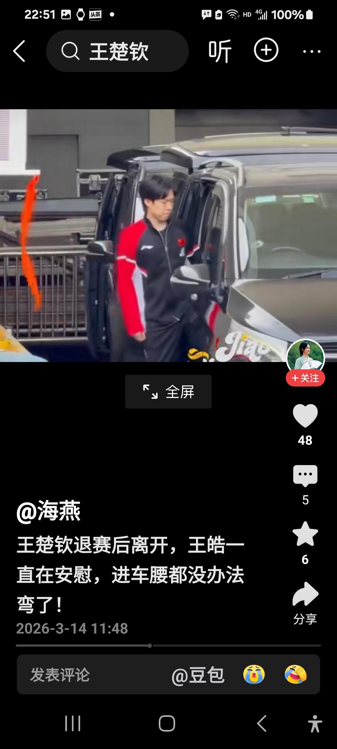 头哥直着腰坐进车里,好心疼他呀! 头哥输了,眼泪花在眼眶打转,唉,看得人好心疼。王皓很有担当,也太疼惜头哥了,他非但没有黑脸,反而笑嘻嘻陪着头哥上车。 头哥在走向车子的时候,球迷们大声喊着:王楚钦好好休息,令人感动。 只见头哥直着腰坐进了车里,球迷看到后说,直着腰坐进车里了唉,腰背有问题。 头哥包括莎莎都太疲惫,太累了,真的该好好休息一下了。莎头输了,很正常,年后都拿了俩冠军,非常不容易了,毕竟不是铁打的呀!