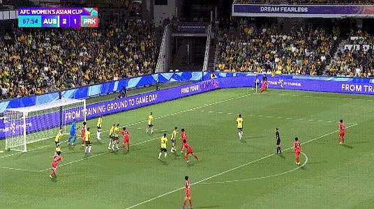 朝鲜女足太可惜了!全场狂轰23脚射门,控球率62%,角球9-1,结果却2-1输给了澳大利亚女足,直接出局! 这场亚洲杯1/4决赛,澳大利亚女足赢得那叫一个“高效”!他们全场才4脚射门,2次射正,全进球了。 上半场,肯尼迪弧顶一脚世界波先开记录。下半场刚开始,朝鲜队后场失误,科尔断球直接扩大比分到2-0。 朝鲜女足蔡恩勇在第65分钟扳回一球后,那真是疯了一样地进攻,围着澳大利亚球门狂轰滥炸。 可澳大利亚门将阿诺德简直开了挂,硬生生扑出了9次射门,把胜利守住了。澳大利亚成功拿到世界杯门票,半决赛要对阵中国女足和中国台北女足的胜者了。朝鲜女足只能去打附加赛。