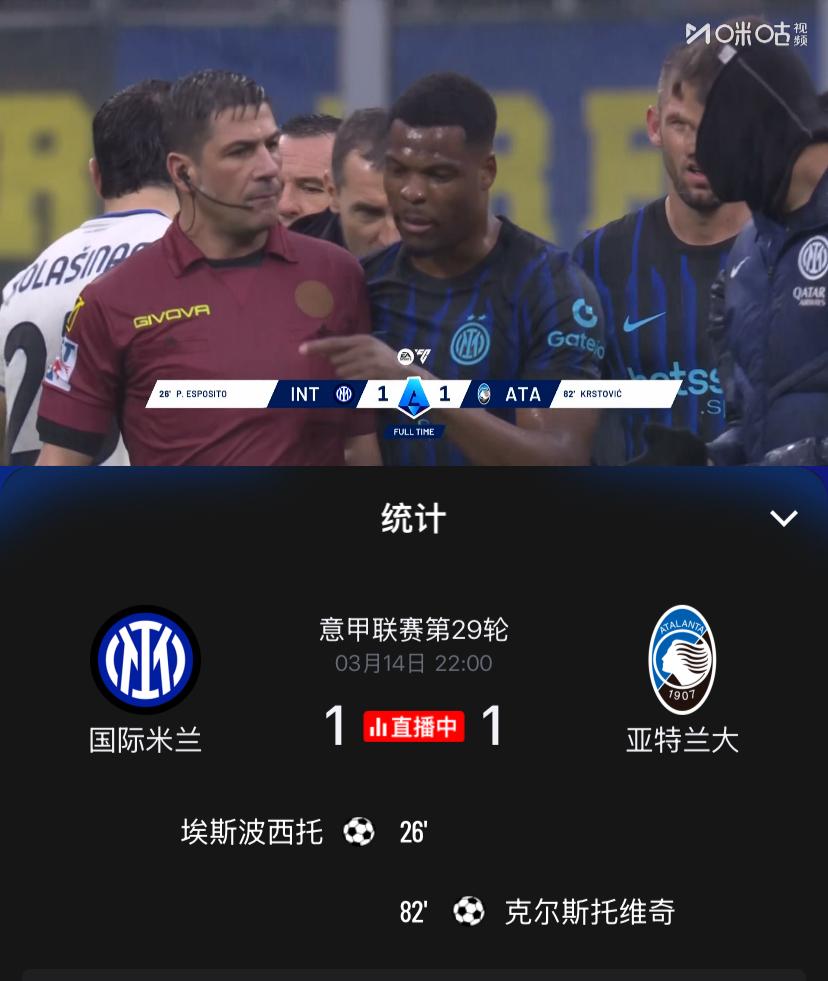 意假,太假了!意甲第29轮国际米兰主场1:1战平亚特兰大,皮奥为球队建功,两轮不