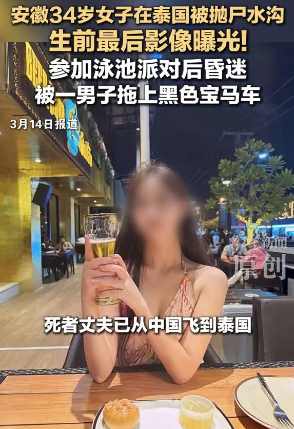 中国34岁女子在泰国被抛尸水沟,失联前曾参加泳池派对,并向朋友发短信求救,根据媒体报道,泳池派对结束后她被拖着上了一辆宝马车,而且还是处于昏迷状态,几天后在距离泳池200多公里以外的一条水沟里发现了尸体。事后,她的丈夫飞到泰国处理后事,当地警方也锁定了一名zhao姓男子。 从一个男人的角度来看,如果是我的老婆,不管是和谁去国外,我都是不放心,也不会允许她和别人去国外。这是实话。俗话说,害人之心不可有,但防人之心不可无。尤其是人在国外,人生地不熟的,出点事儿就是大事。国外没有国内想象得那么糟糕,但也没有国内那么安全。 而且还参加什么泳池派对,男男女女参加这样的所谓派对,还是已婚人士,我是搞不懂的。对于这样的悲剧,其警示意义很重要的一点,还是要有防人之心。因为在泳池派对当中,你不知道会遇到什么样的人,一旦遇到有不轨之心的人,一个女人,往往是没有招架之力的。不管在什么地方,安全都是第一要务。