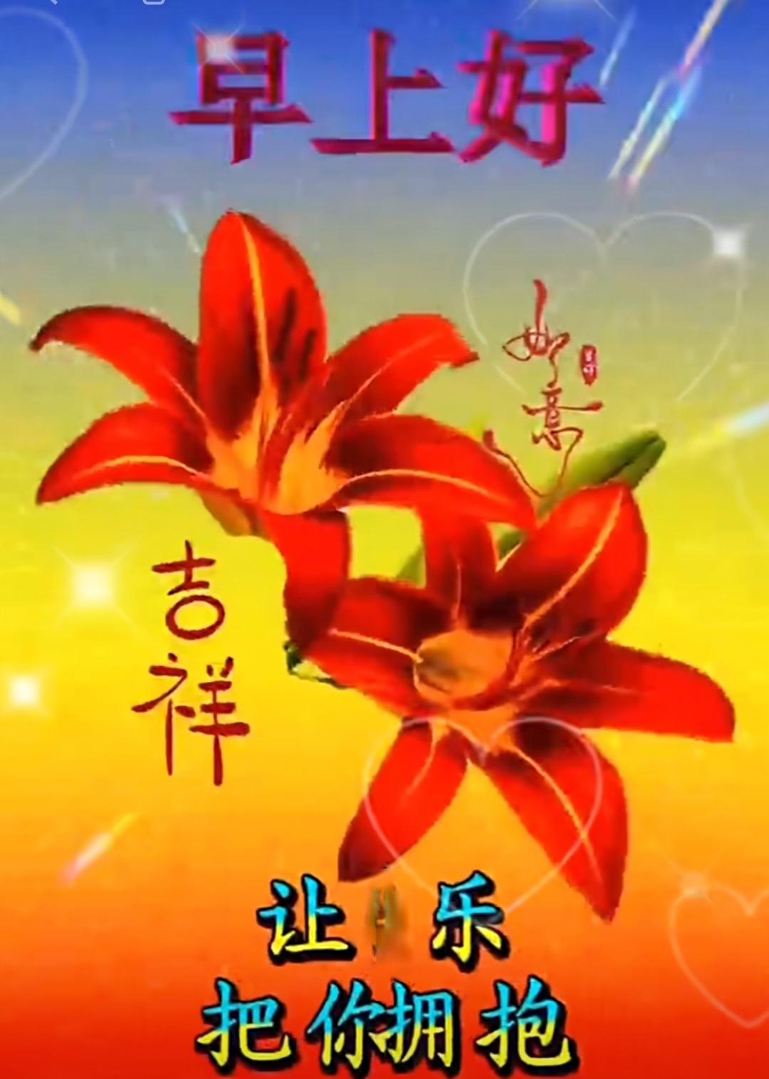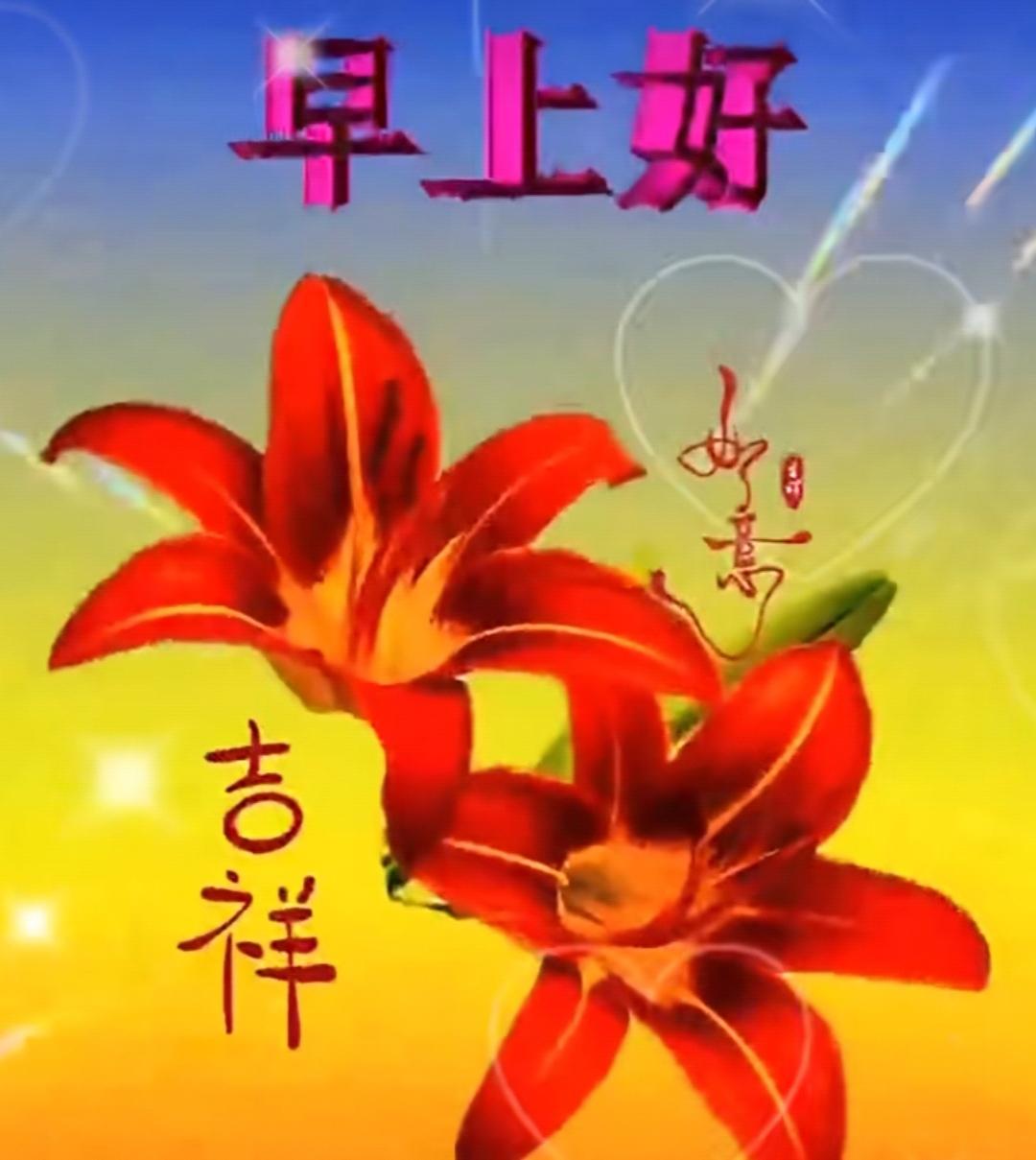 清晨問候迎接陽光, 祝願好友每天吉祥, 成為知己心中不忘, 彼此牵挂地久天长,