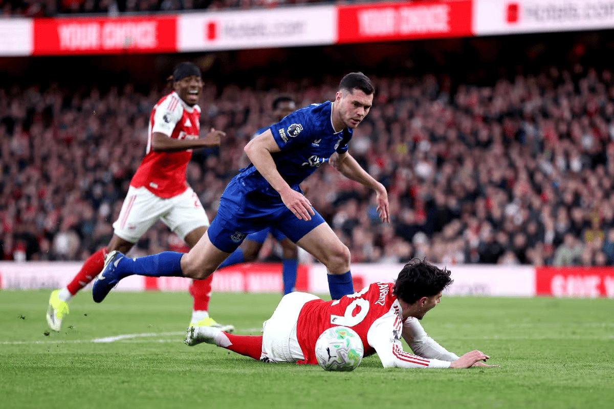 虎扑03月15日讯在此前结束的一场英超联赛中,阿森纳2-0战胜了埃弗顿。本场比赛中出现了这样的一幕:上半场,阿森纳球员哈弗茨接队友埃泽的直塞球,摆脱了埃弗顿后卫的防守。尽管画面显示哈弗茨的脚踝在禁区内被对手基恩踩到,但主裁判安迪-马德利并未吹罚犯规,示意比赛继续。VAR也介入回看了录像,但同样迅速驳回了点球申诉。