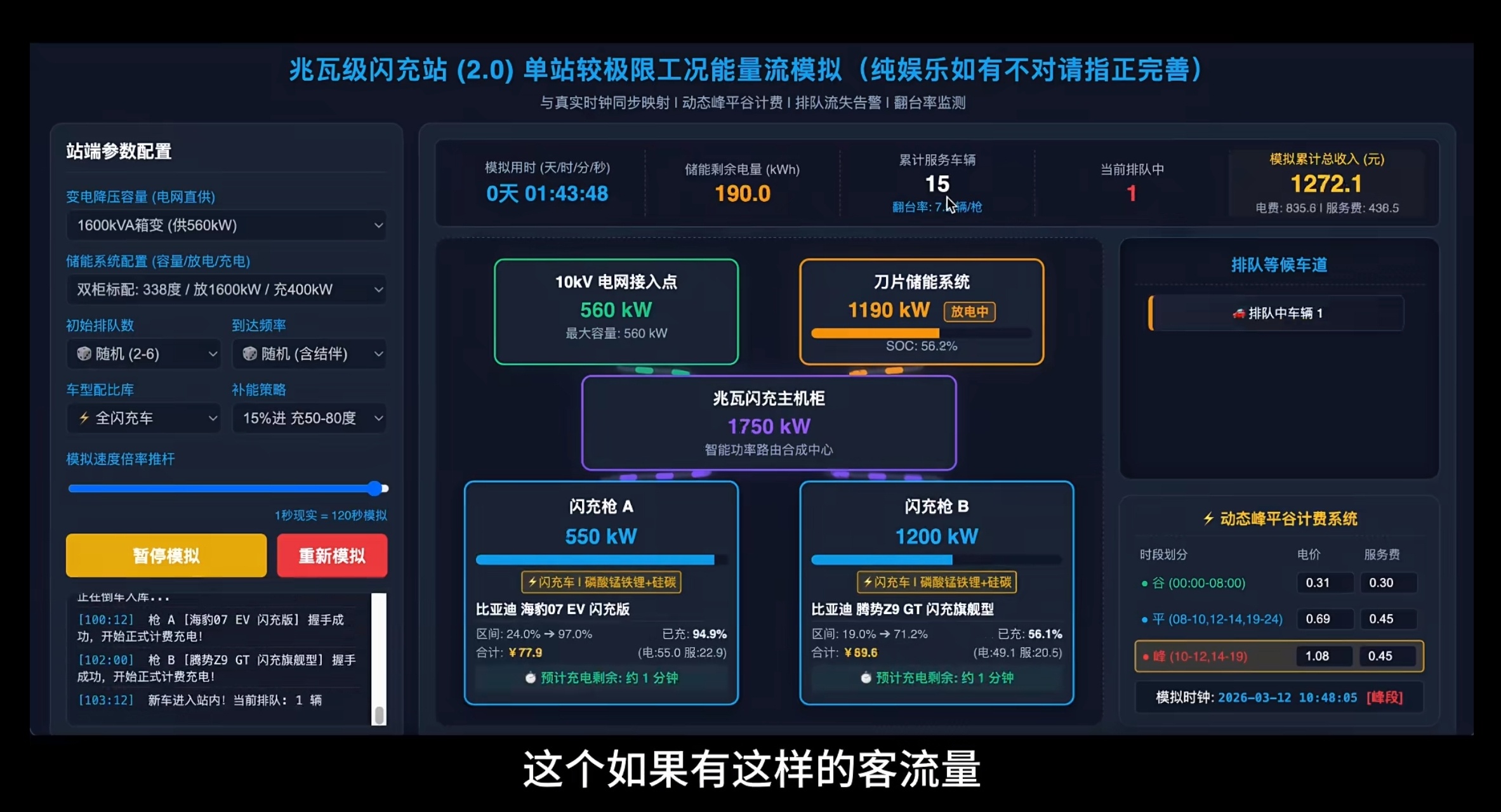电网和储能柜会一起给车充电,极端工况是能榨干储能柜的电,但这个问题也好解决,而且真要是这样,运营方估计得笑麻,这得多赚钱呀。