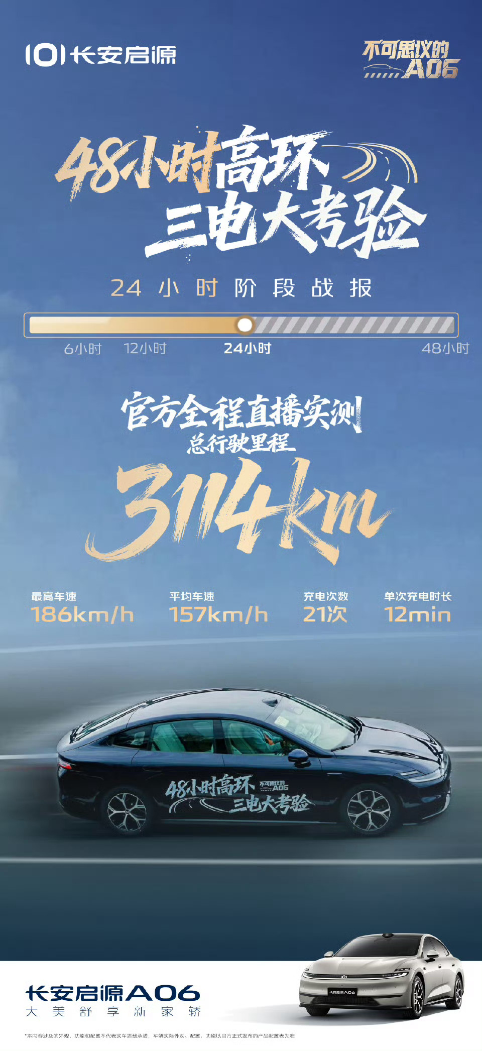 长安启源a06,作为一款十万元价位的车,24小时耐力赛跑了3114km,望周之