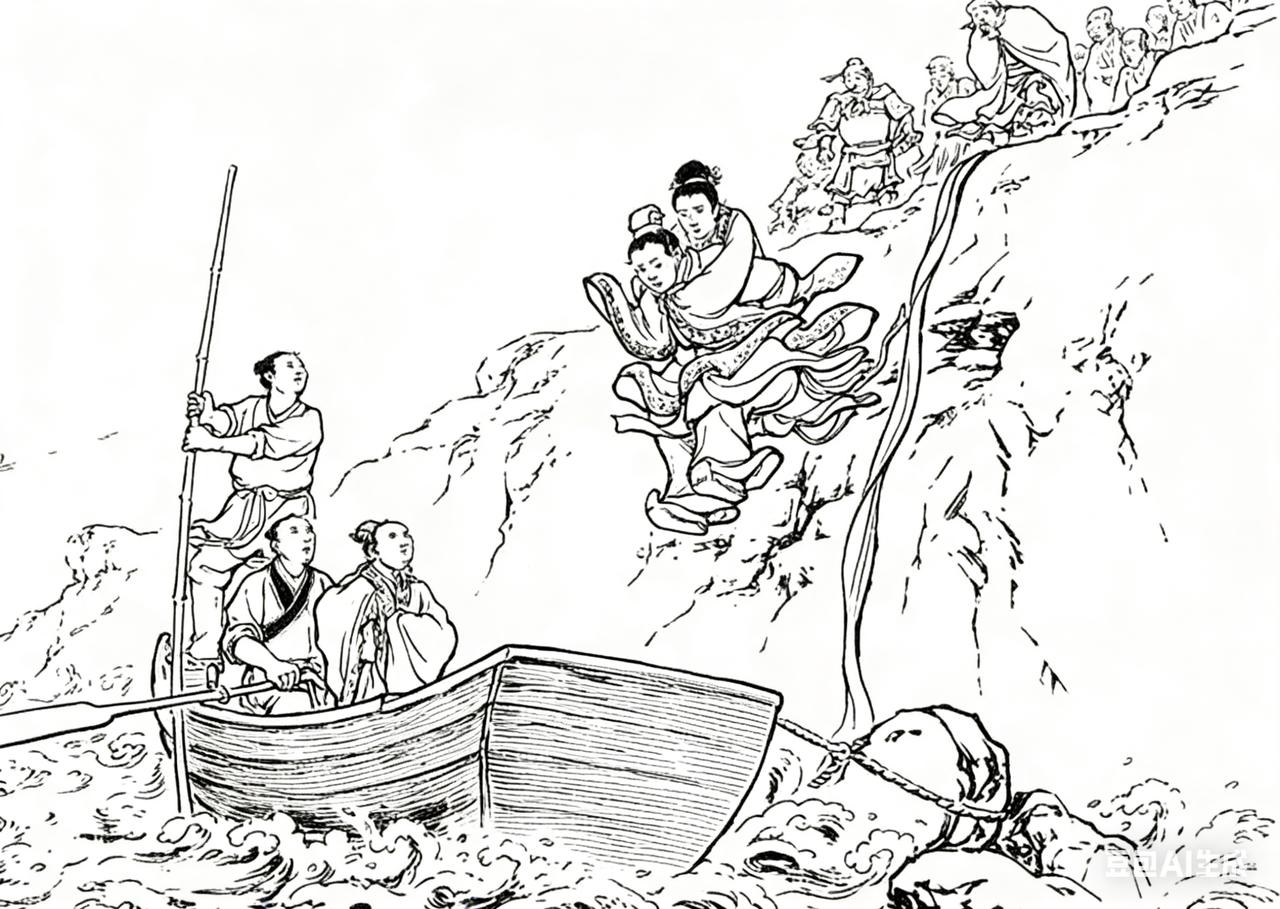 三国演义连环画:这位公子是谁?背着他姐姐从高处跳下,稳稳站在小船上,这轻功在演义中是独一份的存在。莫非他是从武侠世界穿越过去的?
