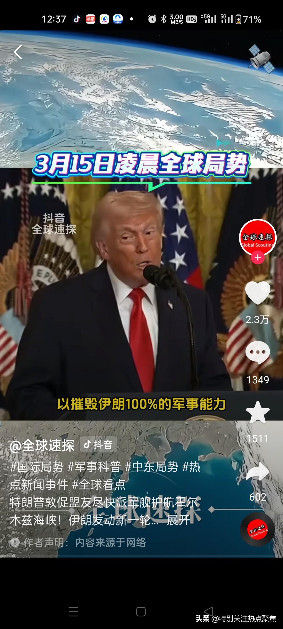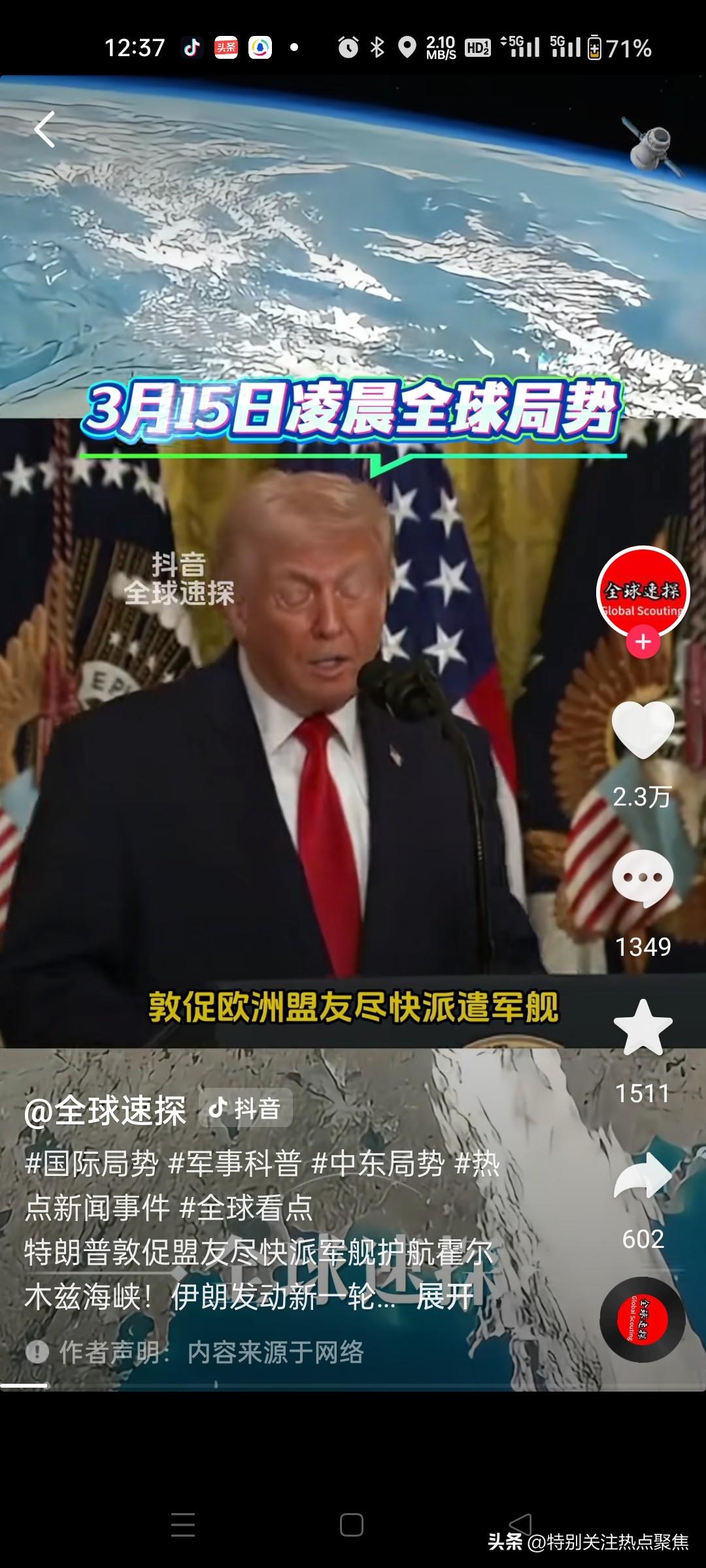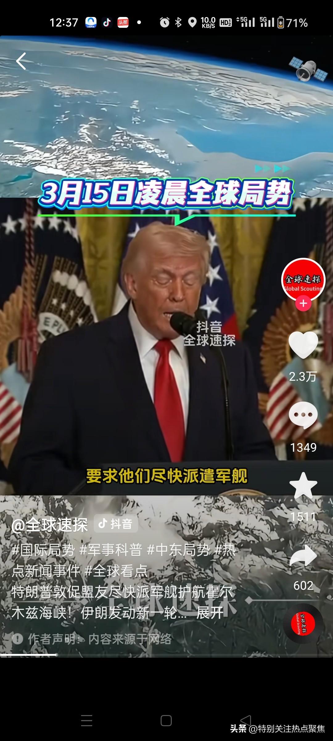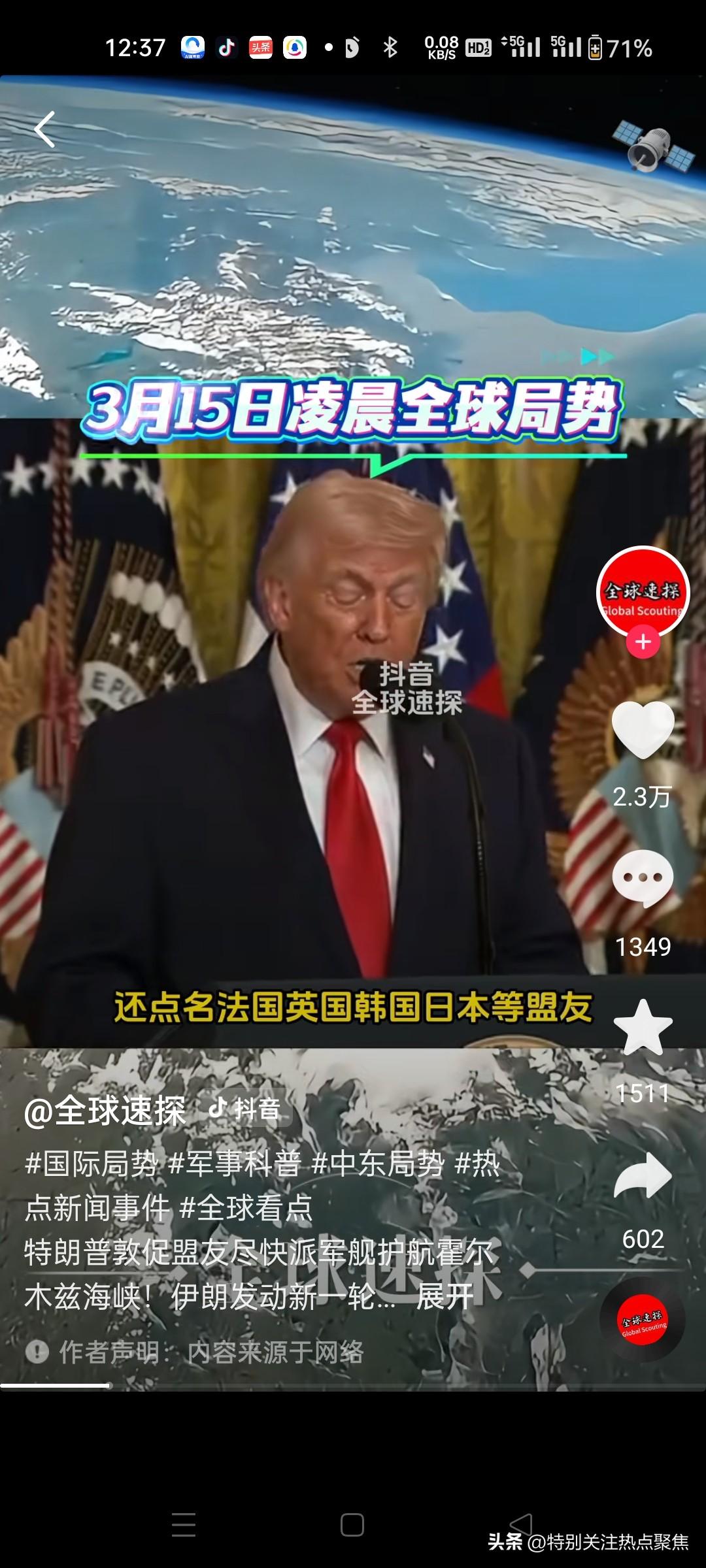 特朗普要求所有依赖海峡石油的国家派军舰护航,称“这是团队合作” 一、特朗普3月14日言论 - 单方面宣布胜利:在Truth Social称“已彻底击溃伊朗,摧毁其100%军事能力”。 - 自相矛盾:同时承认伊朗仍可用无人机、水雷、近程导弹构成非对称威胁。 - 转嫁责任:呼吁所有依赖海峡石油的国家派军舰护航,称“这是团队合作”,美国“提供大量帮助”但无具体方案。 - 升级威胁:扬言对伊朗海岸线猛烈轰炸、击沉舰船,称将让海峡“很快开放”。 二、霍尔木兹海峡现状 - 伊朗封锁:仅禁止美以及其盟友船只通行,其他国家船只“可自由通行”(土耳其、印度已有船只通过)。 - 革命卫队声明:海峡在其全面监控下,美以船只将被打击。 - 美国困境:CNN分析美军护航需穿越伊朗“死亡谷”(快艇、水雷、岸基导弹),风险极高、价值有限。 三、国际反应 - 伊朗强硬:外长阿拉格齐嘲讽美国“安全保护伞千疮百孔,现在乞求他国帮忙”;革命卫队警告护航将被视为威胁,“在导弹射程内被阻止”。 - 盟友态度:英国称“正与盟友讨论、考虑选项”;法国已派舰机但未明确响应护航;白宫未证实有国家同意派兵。 - 能源博弈:俄罗斯借美放宽对俄石油制裁,积极推销俄油,泰国、斯里兰卡有意采购。 - 印伊磋商:印度与伊朗紧急谈判石油运输与海峡通行问题 四、潜在影响(核实+补充) - 油价飙升:全球供应紧张,油价持续走高;美国考虑释放战略储备或放宽对俄制裁,效果存疑。 - 冲突升级:特朗普威胁“比以往猛烈20倍打击”,伊朗警告若美以持续侵略,将全面禁止地区石油出口。 - 同盟裂痕:特朗普此前多次指责欧洲“搭便车”,此次护航呼吁进一步暴露“责任转嫁”,冲击美欧信任。 总结 特朗普“胜利宣言”与现实矛盾,试图转嫁海峡安保成本,但伊朗强硬、盟友观望、能源博弈加剧,使其“团队合作”呼吁陷入孤立。这场冲突正以全球能源命脉为杠杆,持续撬动地缘政治与经济格局。特朗普雷人言论