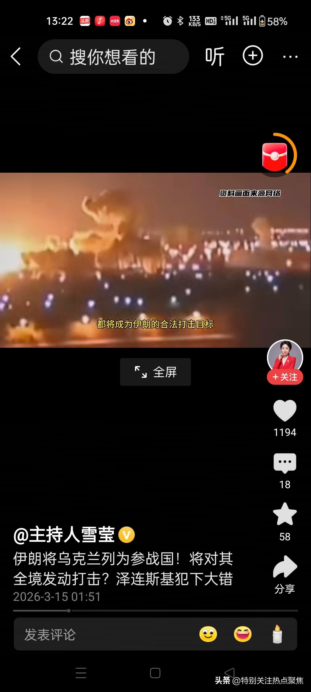伊朗高官宣称乌克兰全境已成为其合法打击目标 核心声明:伊朗议会国家安全和外交政策委员会主席易卜拉欣·阿齐兹称,由于乌克兰向以色列提供无人机支持,还派遣反无人机专家介入中东冲突,乌克兰实际上已卷入战争,其全境成为伊朗的合法打击目标。1610 法律依据:伊方援引《联合国宪章》第五十一条,认为乌克兰的行为构成对伊朗的正式宣战,所以伊朗拥有打击乌克兰领土的合法权利。9 背景原因:乌克兰总统泽连斯基近期多次表示愿意协助相关国家拦截伊朗无人机,且有消息称乌方已向中东地区派遣反无人机专家准备行动。36 潜在风险:分析指出,若伊朗实施打击,其弹道导弹射程理论上可覆盖乌克兰南部及中部部分地区(如敖德萨、基辅附近),但直接军事打击受地理距离限制。9 风险提示:目前该声明主要是伊朗官员的单方面警告与舆论施压,尚无伊朗对乌克兰本土实施实质性军事打击的确切报道。部分网络内容包含“第三次世界大战”或大规模地面入侵的推测,这属于观点而非既定事实,需理性看待局势发展。712