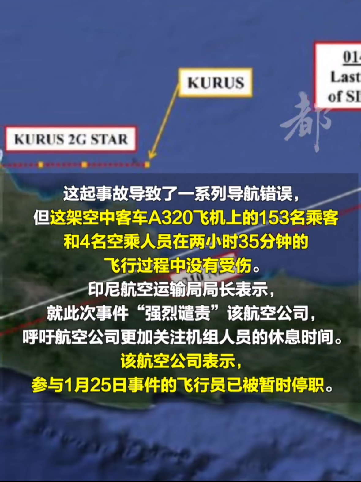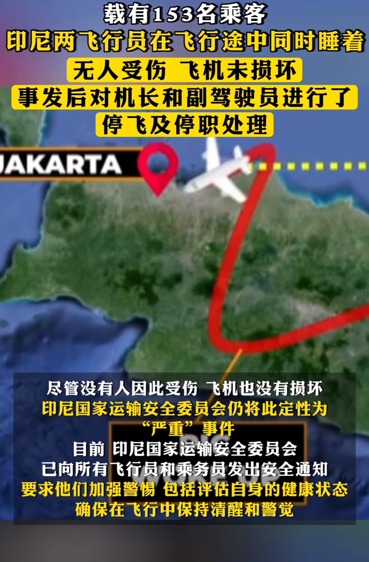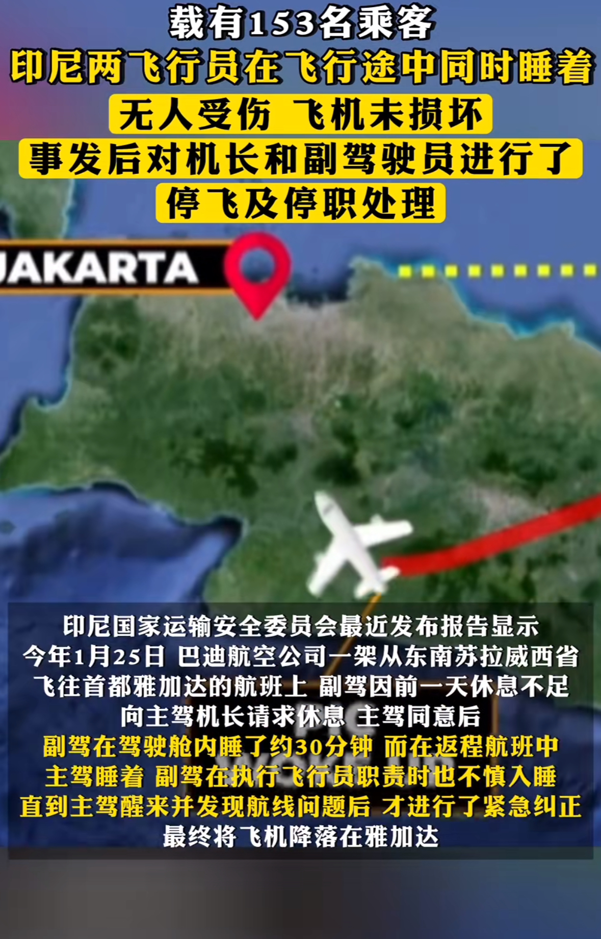 在媒体报道中得知:飞机在返航中,2名飞行员不慎睡着了,当她们醒来后才发现飞机已经偏离了原来的航线后他们进行了紧急纠正,最终才使飞机降落在了雅加达。