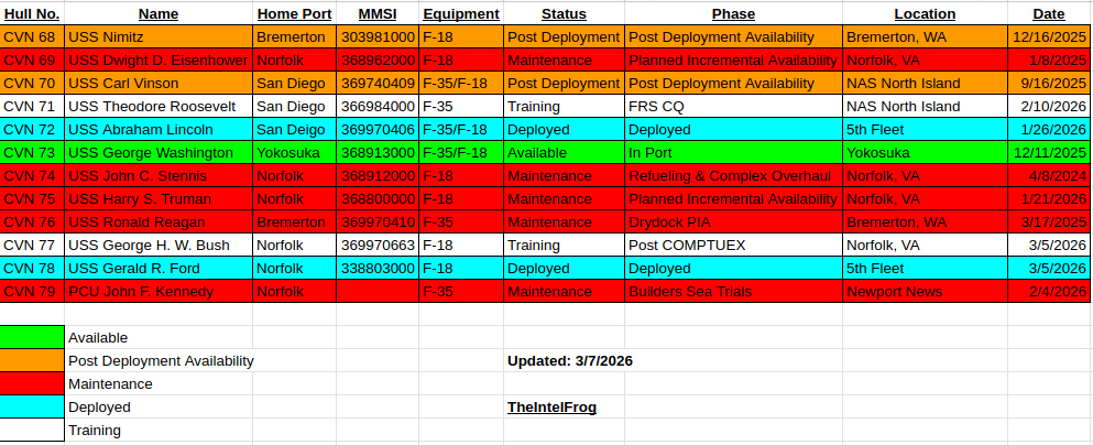尼米兹号已于3月7日从华盛顿州布雷默顿海军基地出发,前往位于弗吉尼亚州诺福克海军基地,这是其在剩余服役期内进行母港转移计划的一部分。随后,原本预计该舰将在纽波特纽斯的亨廷顿·英格尔斯工业公司(HII)进行停用和反应堆卸料。