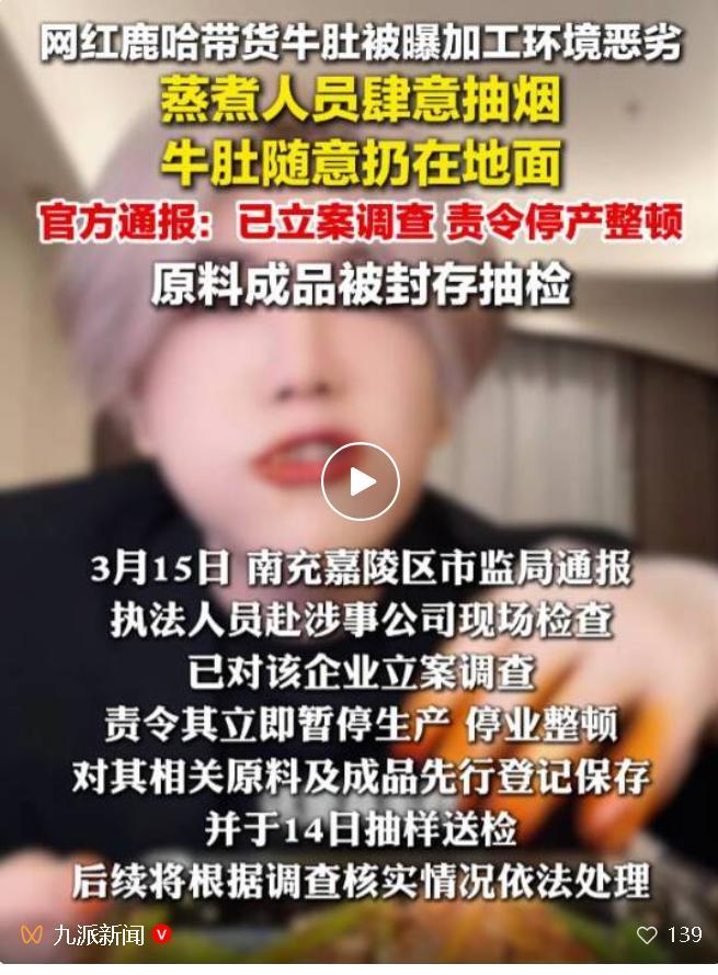 鹿哈或需赔偿消费者26.9亿元鹿哈因3000万单问题毛肚陷赔偿危机,26.9亿金额刷新直播带货纪录,生产乱象触目惊心,流量红利再大也不能漠视食安红线!