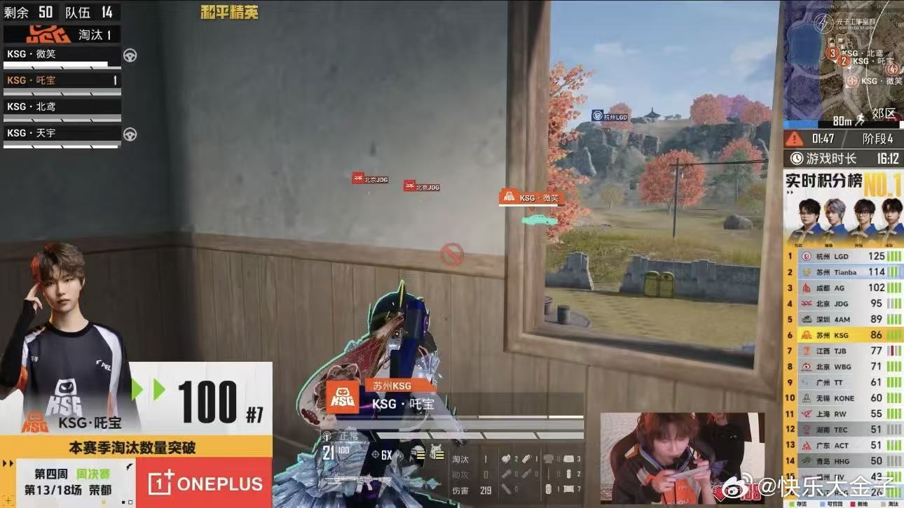 KSG吒宝赛季淘汰破百 吒宝本赛季淘汰赛破百了。和平精英职业联赛