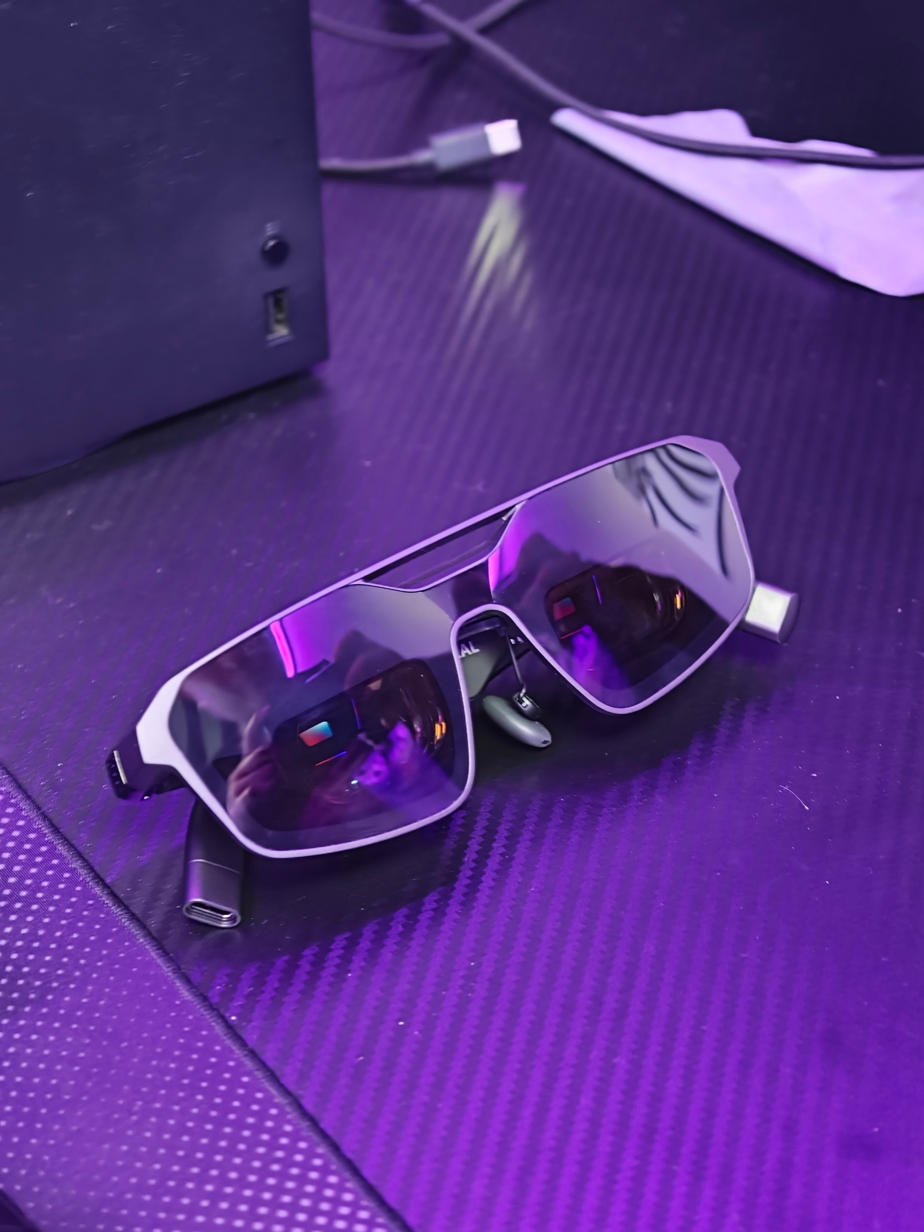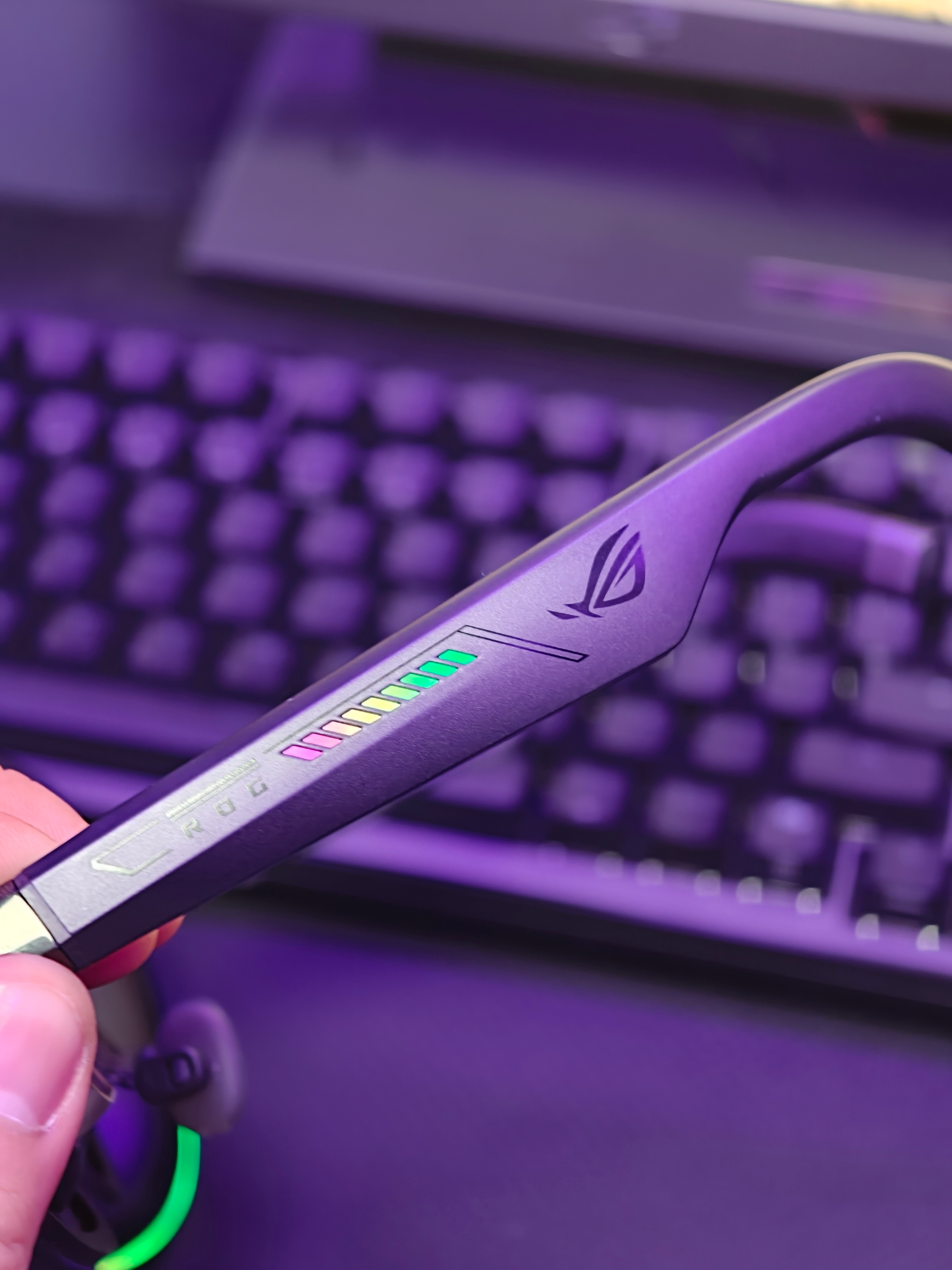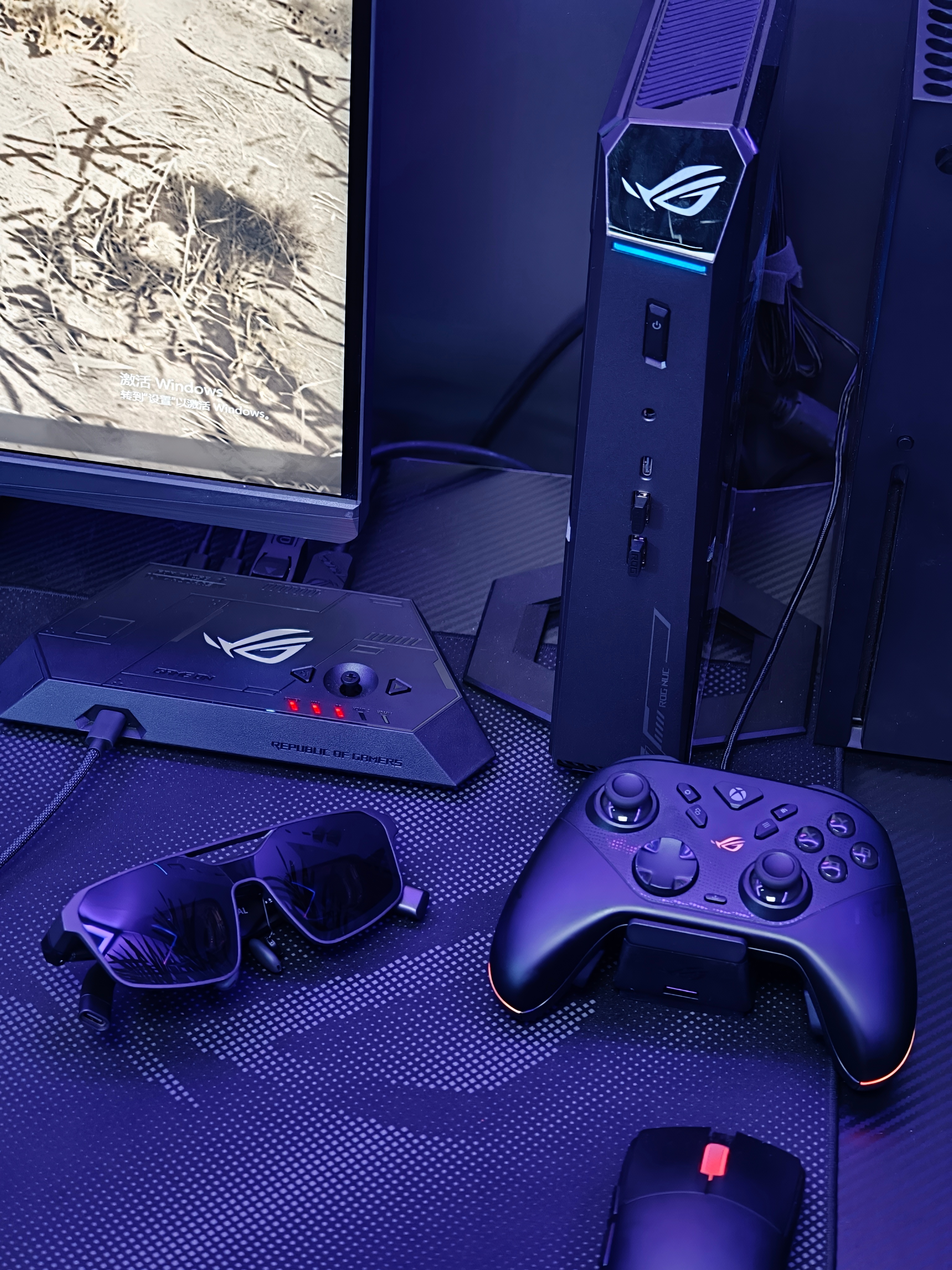 我觉得最惊艳的还是ROG联名的ROG XREAL R1,基于 XREAL One Pro 硬件开发的,240Hz高刷,镜腿自带RGB灯条,搭配ROG Dock全设备通吃,PC/PS5/Xbox/ROG Ally一键切换,现场试玩《怪物猎人 荒野》,高刷无拖影、低延迟跟手,而且完全不会觉得晕,很有继续玩游戏的欲望!可以穿戴的信仰之力,真的是太爽了~