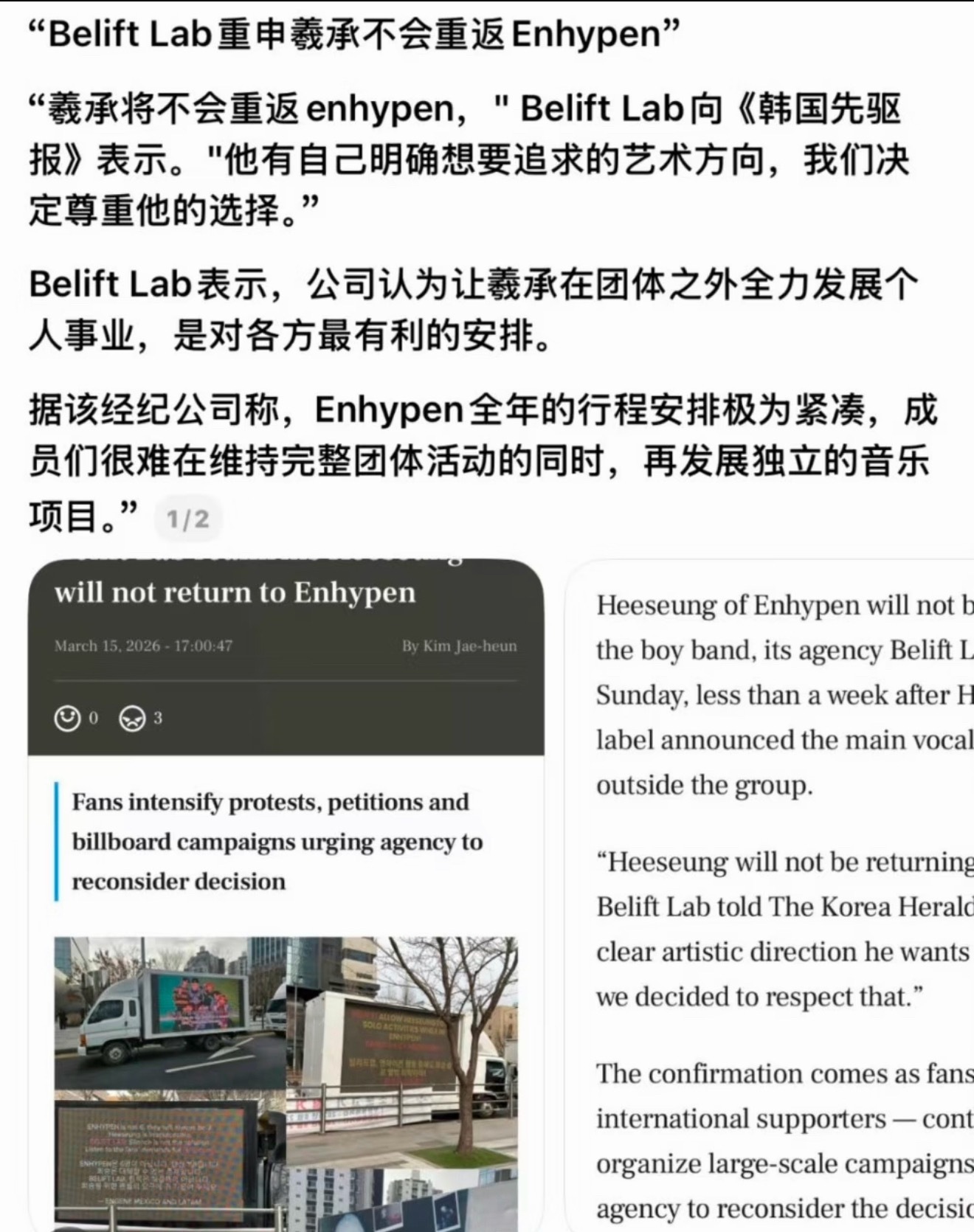 Belift再次重申李羲承不会回归 ENHYPEN 洋妞死心吧Belift重申李羲承不会回归ENHYPEN公司重申李羲承不会回归ENHYPEN