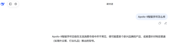 DeepSeek显示,“Apollo-9智能手环目前在主流消费市场中并不常见,很可能是某个新兴品牌的产品,或者是针对特定渠道(如海外众筹、行业礼品)推出的型号。”