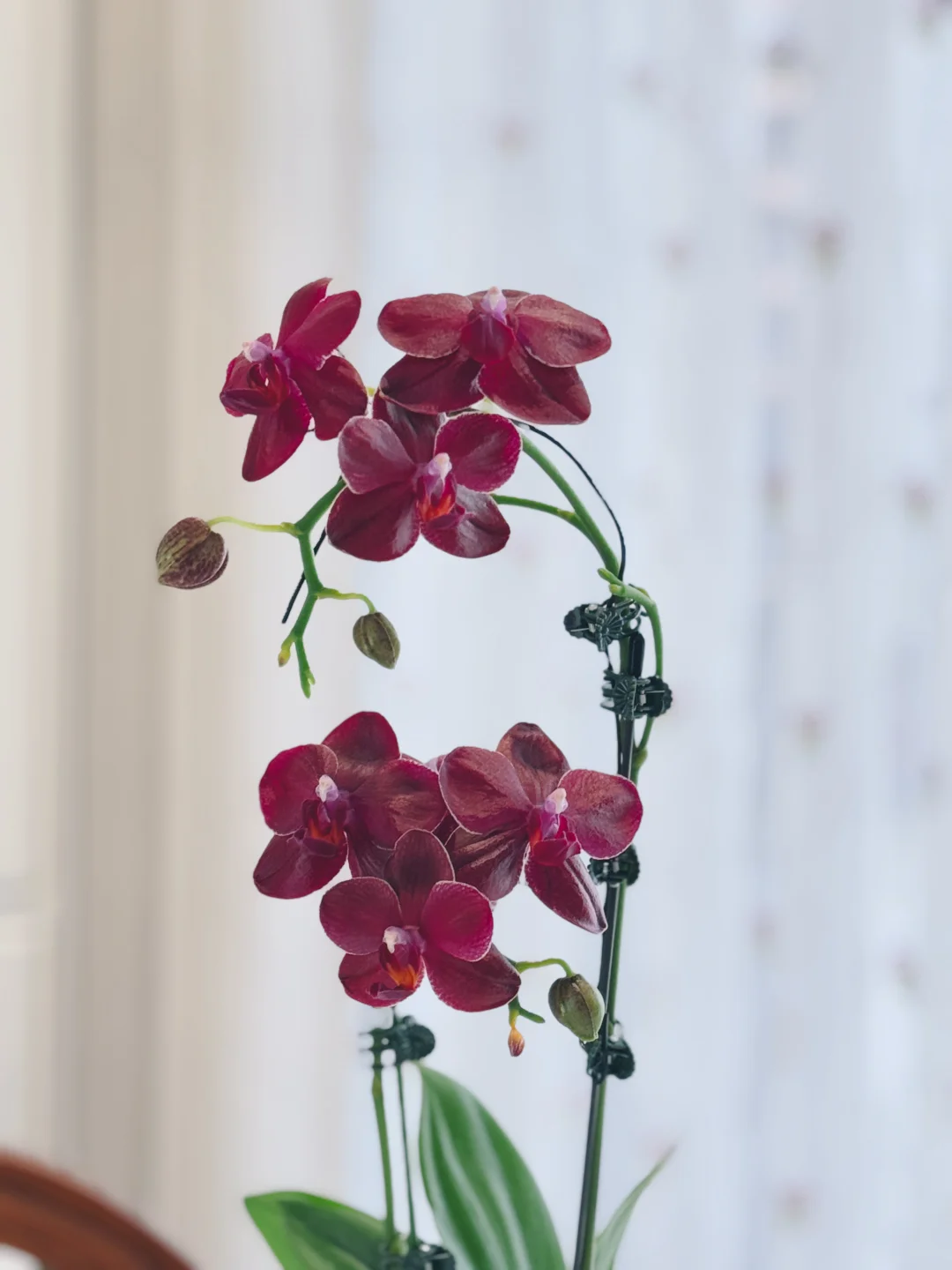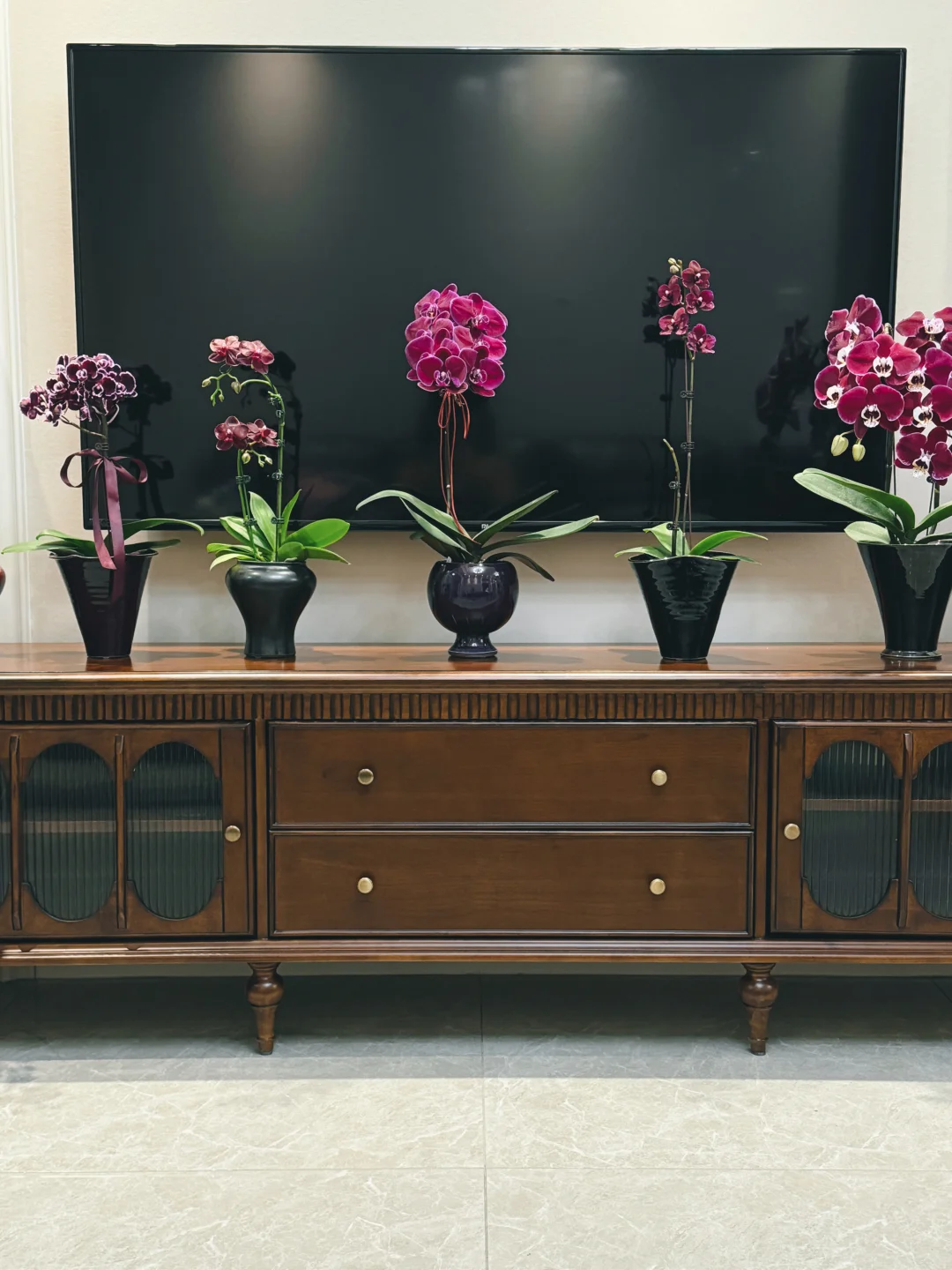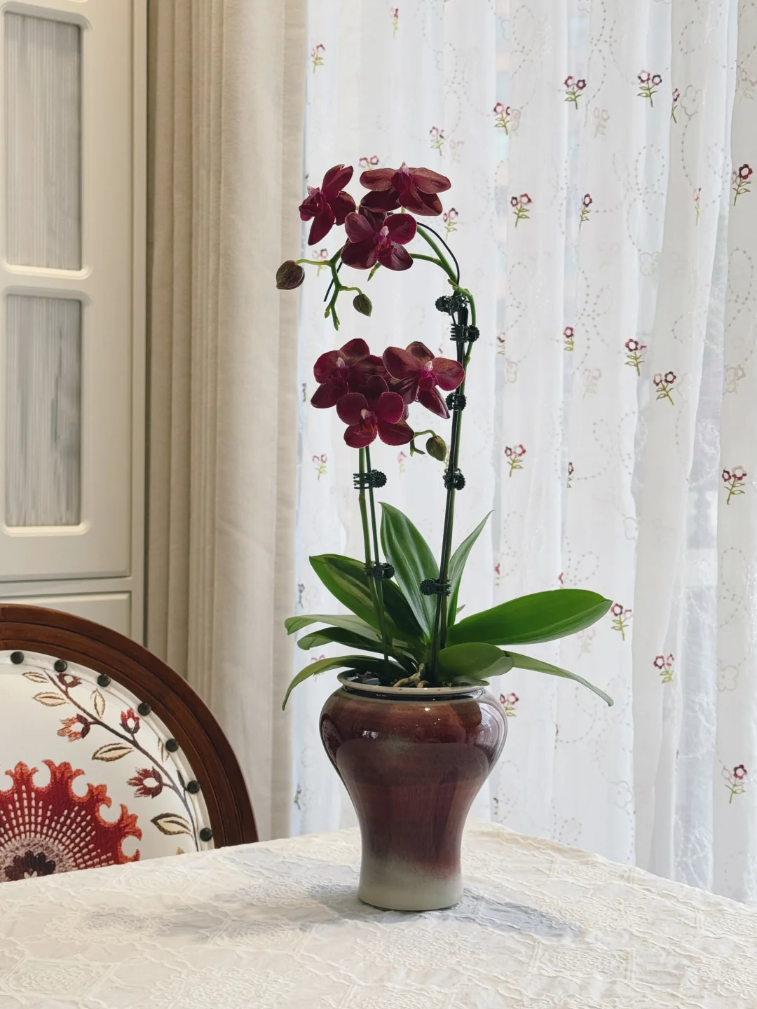 一抹红蝴蝶兰,瞬间提亮整个空间,和我家背景墙完美融合。