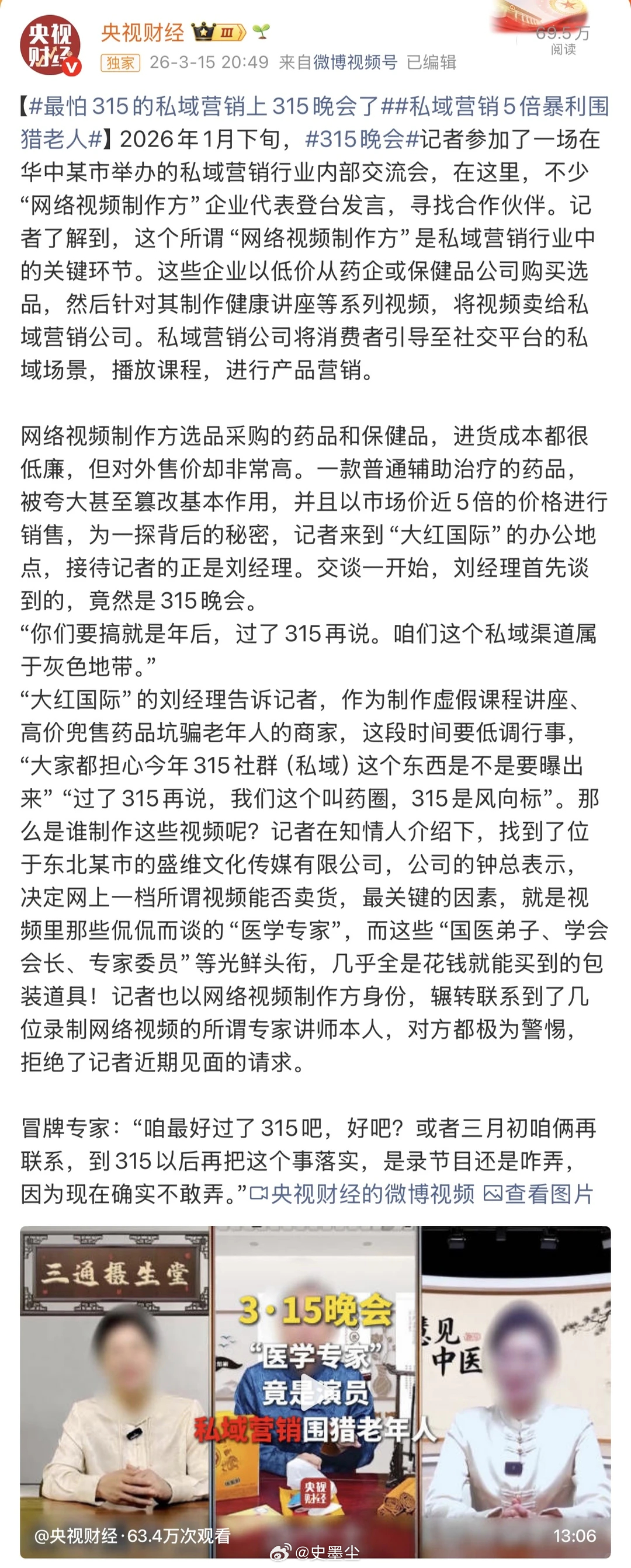 315曝光名单2026年315晚会曝光名单汇总。 ⑴ 315晚会曝光漂白鸡爪。⑵ 315晚会打假网红神药“外泌体”。⑶ 315晚会曝光增高骗局。⑷ 315晚会打假“私域营销”。⑸ 315晚会曝光租赁电动自行车违规解除限速。⑹ 315晚会曝光AI大模型被投毒。⑺ 315晚会曝光荐股分成骗局。