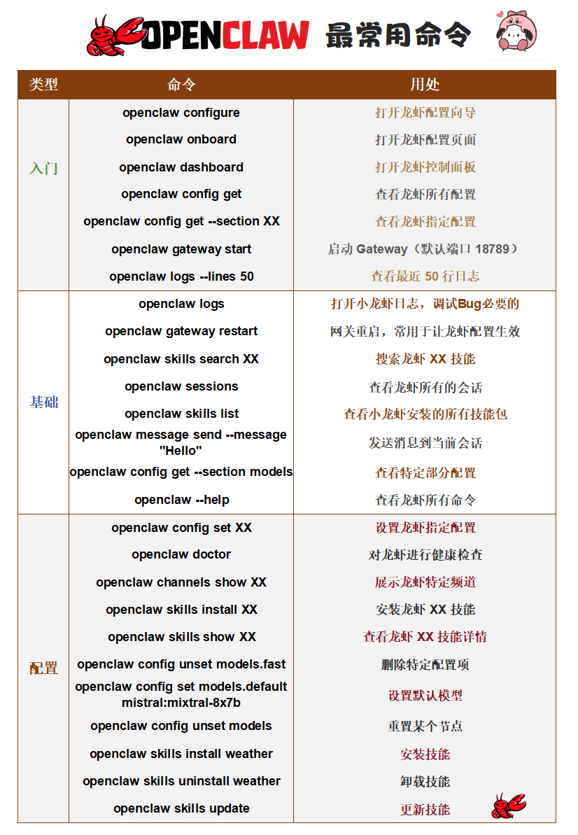一些小龙虾openclaw常用指令,很实用。