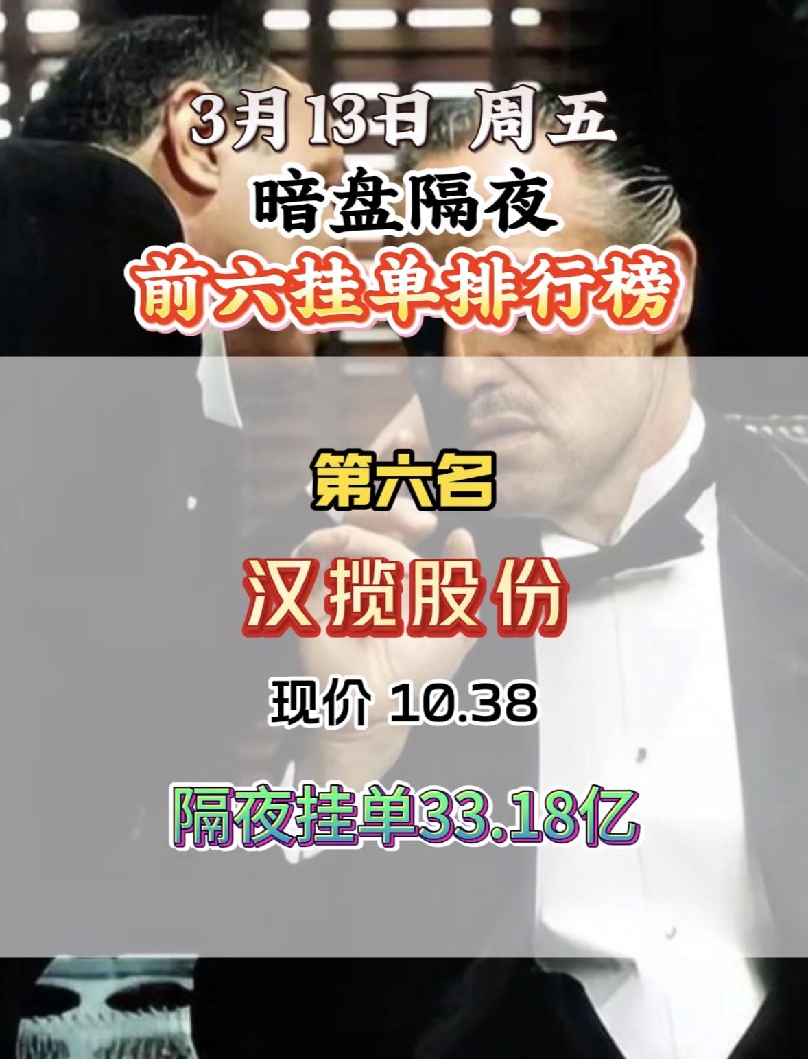 3月16日暗盘隔夜挂单个股揭晓。 3月13日暗盘隔夜挂单排名里,汉缆股份排第六