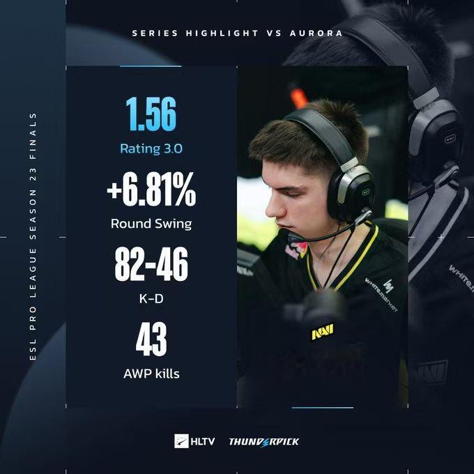 虎扑03月16日讯在刚刚结束的EPLS23决赛,NAVI对阵Aurora的比赛中,w0nderful全场砍下82杀,轰出了1.56的Rating以及+6.81%的RoundSwing!帮助NAVI击败Aurora,夺得EPLS23冠军。