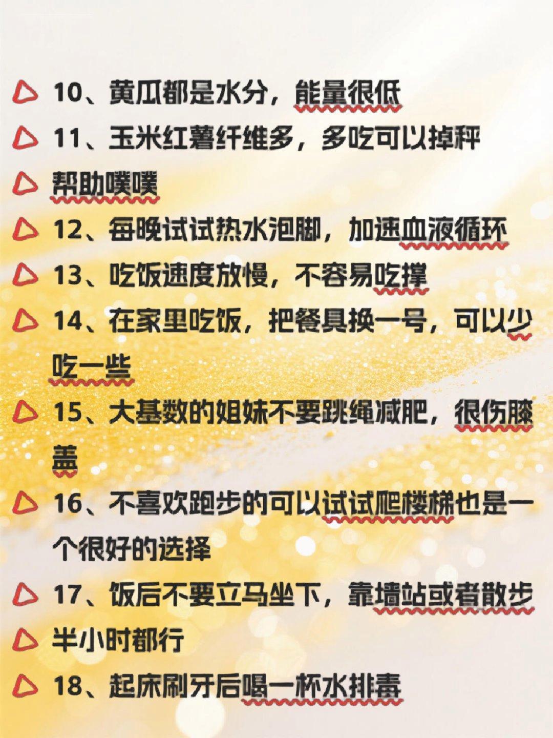 减肥一定要知道的真相:湿重人群不宜过量饮水,否则会加重身体负担。下午1—3点饥饿时可食用低糖水果,高糖水果尽量少吃。睡前4小时不再进食,青菜可正常食用,避免沙拉酱。生菜有助于减脂,牛肉、虾仁等优质蛋白可正常摄入。水果过量也会导致发胖,绿茶、黑咖啡可帮助提高代谢。大基数人群不建议跳绳,避免伤膝,可选择爬楼梯。脂肪通过呼吸代谢,并非出汗,汗蒸、暴汗服无法真正减脂。不要盲目节食,需保证基础代谢,否则代谢会越来越低。不存在局部减脂,减脂是全身性的,过度戒碳水易导致脱发。