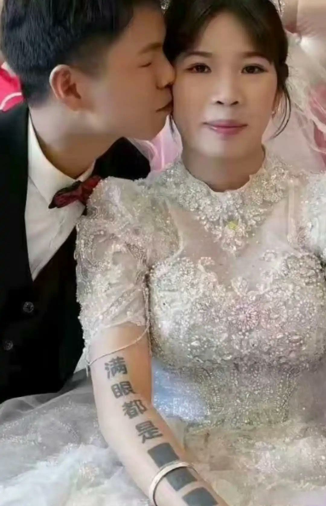 只能说新娘是个有故事的人,这纹身真特别啊。