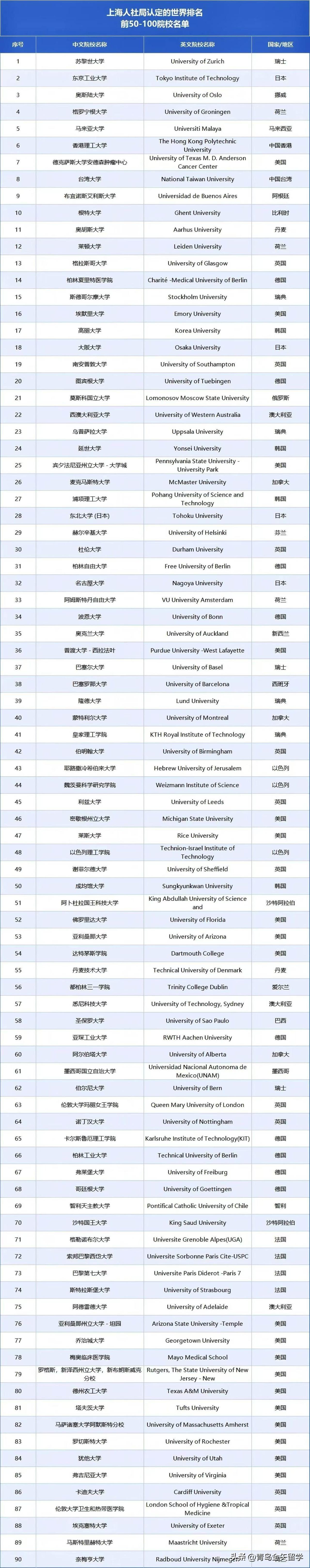 【最新留学生落户上海名单】 2026上海人社局认可Top100院校名单更新,94