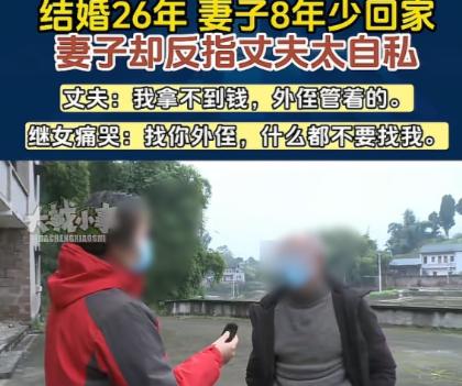 重庆,男子和妻子结婚26年,帮着妻子将3岁的继女抚养长大,继女成家后,妻子去了继女家生活,8年没有回来过,男子找来调解员,希望妻子跟自己回来过日子,可男人妻子却说:丈夫每月就给自己300元,自己要交水费、电费,要走人情,还要给女儿交学费,根本不够用,自己胳膊疼,丈夫却让自己拿单据过去才给钱,丈夫不给钱给自己用,对自己也不好,自己还跟着他干什么? 最近在重庆,一件家庭纠纷让人看了心里不是滋味,一名男子,今年大概五十多岁,和妻子结婚整整26年,这二十多年里,他没半点怨言,帮着妻子把当时才3岁的继女拉扯成人,从懵懂孩童养到成家立业,按说也该享享清福了。 可谁能想到,继女一成家,妻子就收拾东西去了继女家,这一去就是8年,再也没回过两人曾经的家,男子一个人守着空荡荡的房子,日子过得孤孤单单,实在熬不住了,就找来了调解员,唯一的心愿就是希望妻子能跟自己回去。 本以为是妻子无情,可当调解员找到妻子,听她一开口,才知道这背后藏着太多委屈。 妻子说,这些年跟着丈夫,日子过得太憋屈,丈夫每个月只给自己300块钱,这300块钱要管家里的水费电费,平时走人情随份子要花钱,早年继女上学,学费也得从这里面挤,说白了,这点钱连基本的生活都撑不起。 更让她寒心的是,自己胳膊疼得厉害,想拿点钱去看医生,丈夫却不情不愿,非要让她拿看病的单据过去,才肯给钱,妻子越说越委屈,直言丈夫从来不给自己多余的钱,对自己也没什么关心,这样的日子,她实在过不下去了。 男子听着妻子的控诉,也很无奈,他说自己没什么本事,收入不高,每个月能拿出300块钱已经不容易了,并不是故意苛待妻子,他觉得自己帮着抚养继女二十多年,没有功劳也有苦劳,妻子不该在继女成家后就撇下自己不管。 其实这事,没有绝对的对错,男子确实付出了,二十六年的婚姻,把继女当亲生女儿养,这份情值得肯定,可他忽略了妻子的感受,300块钱在现在这个年代,确实难以覆盖一个家庭的基本开支,更别说看病走人情这些额外花费。 夫妻之间,本该相互体谅,丈夫就算收入不高,也该多关心妻子的身体和难处,而不是用单据来衡量关心。 妻子的委屈也能理解,常年被生活拮据和丈夫的冷漠裹挟,心里的积怨越来越深,离开或许是她无奈的选择,只是她也该想想,丈夫二十多年的付出,并非一文不值,毕竟夫妻一场,又一起抚养孩子长大,没必要闹得太僵。 目前,调解员还在耐心调解,希望能化解两人之间的矛盾,说到底,婚姻走到这一步,都是日积月累的矛盾造成的,夫妻相处,有钱没钱不重要,重要的是彼此包容,不然再长久的婚姻,也会被冷漠和委屈压垮。