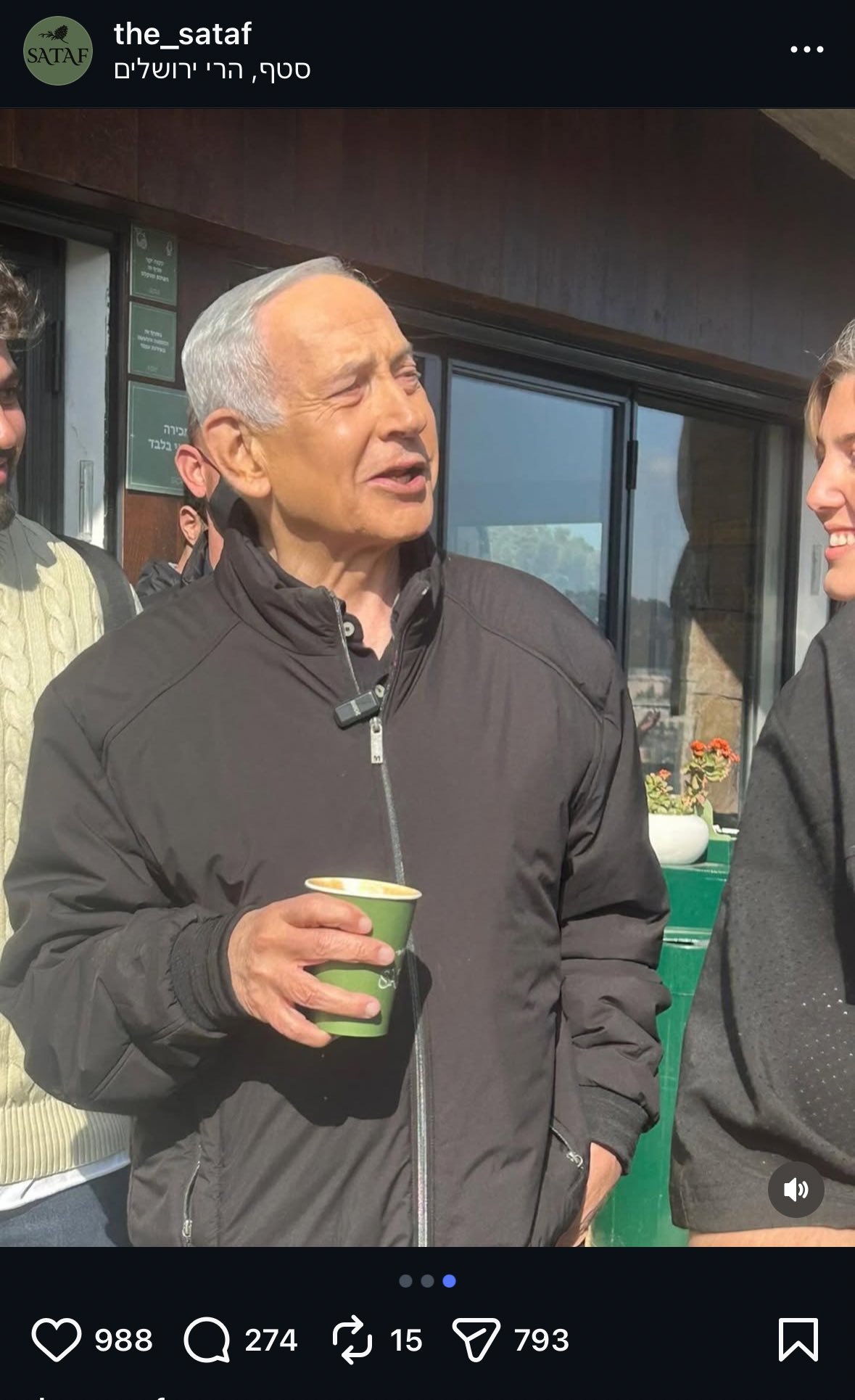 以色列放出了内塔尼亚胡在咖啡馆的照片。有网友质疑,耶路撒冷唯一一家名为Sataf