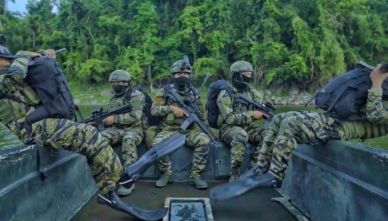 身着虎纹迷彩服的菲律宾陆军特种部队士兵。