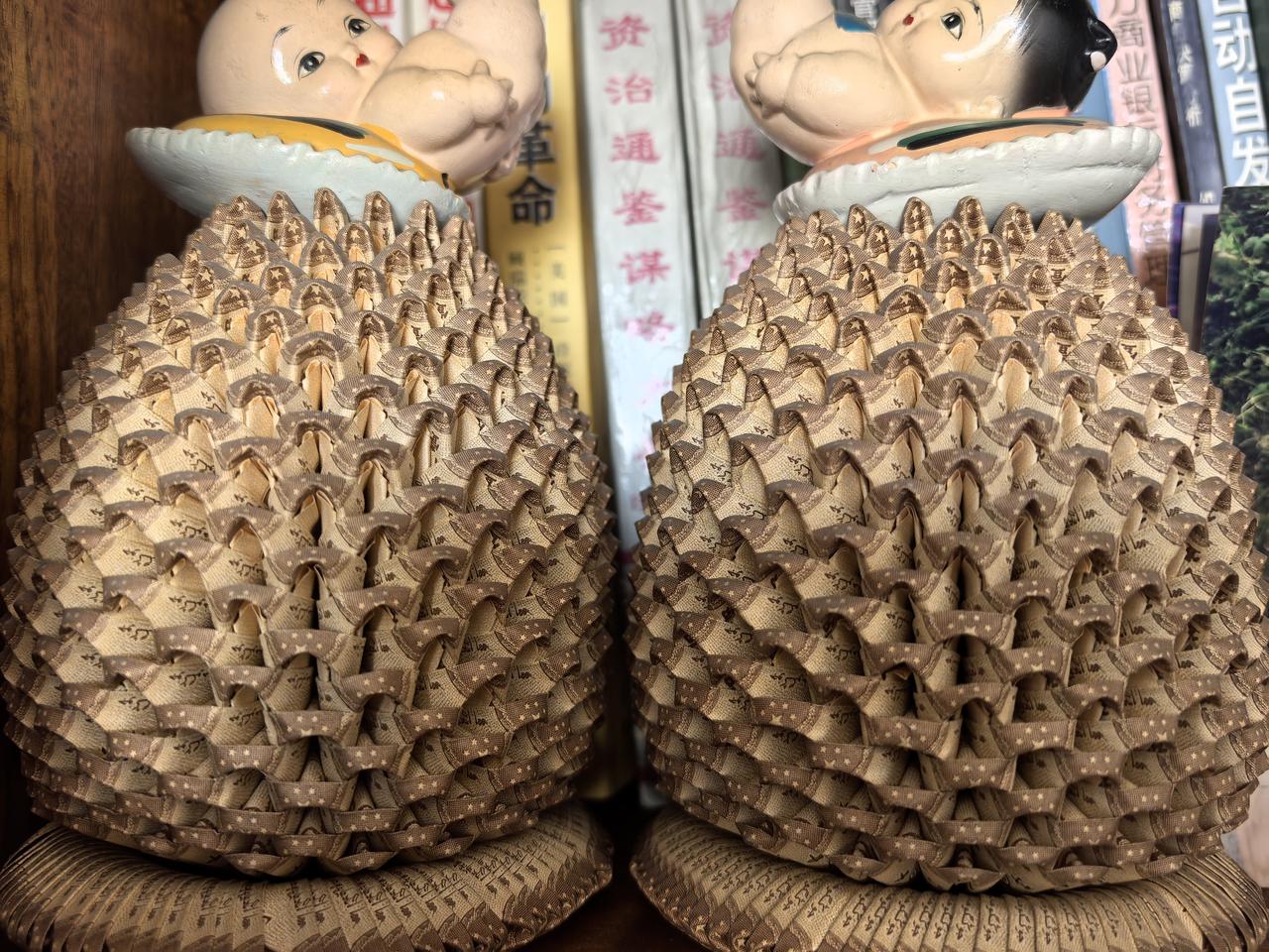 大概35年前,那时在银行干出纳,花20元换成一分纸币,叠了两个菠萝,听说现在老值