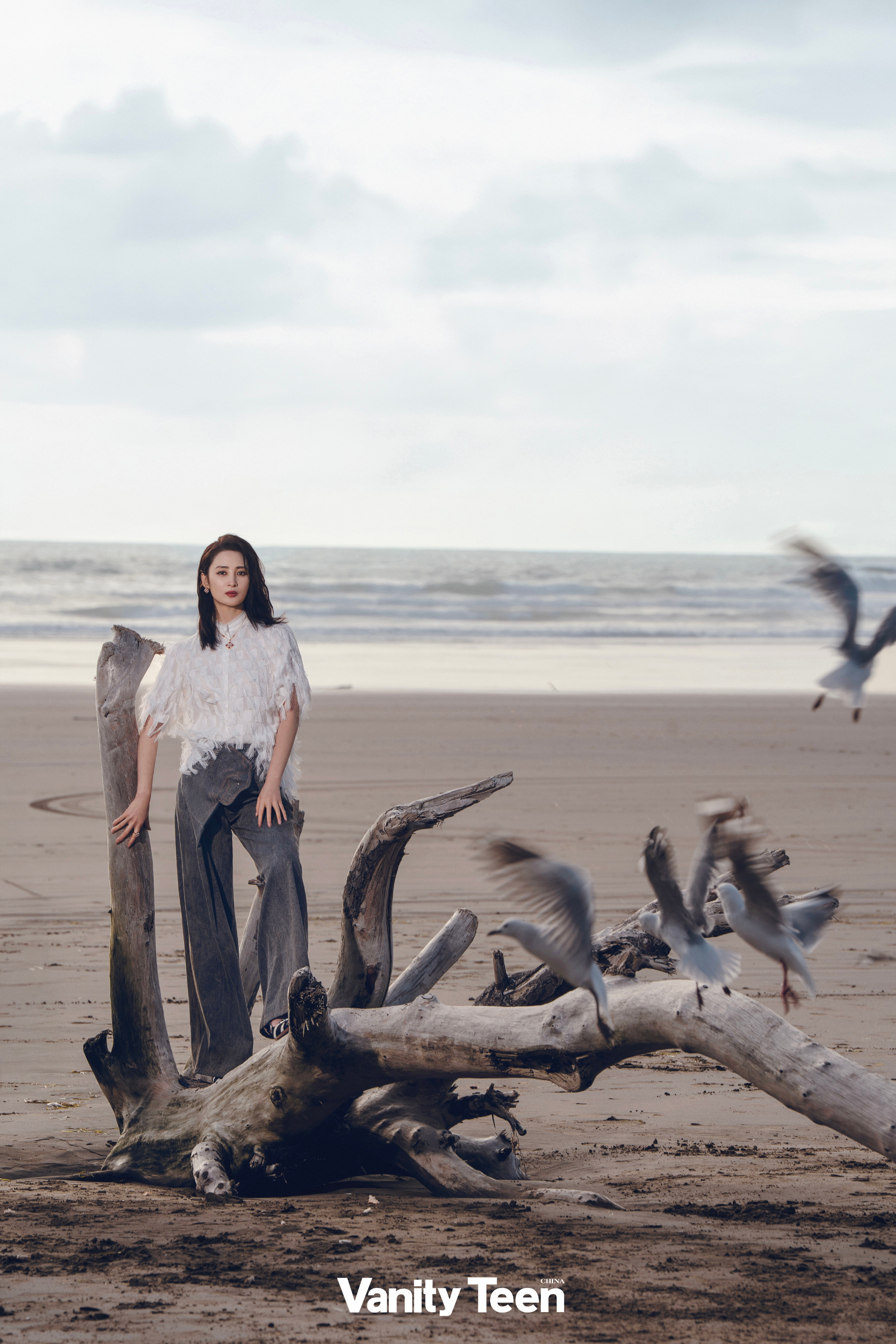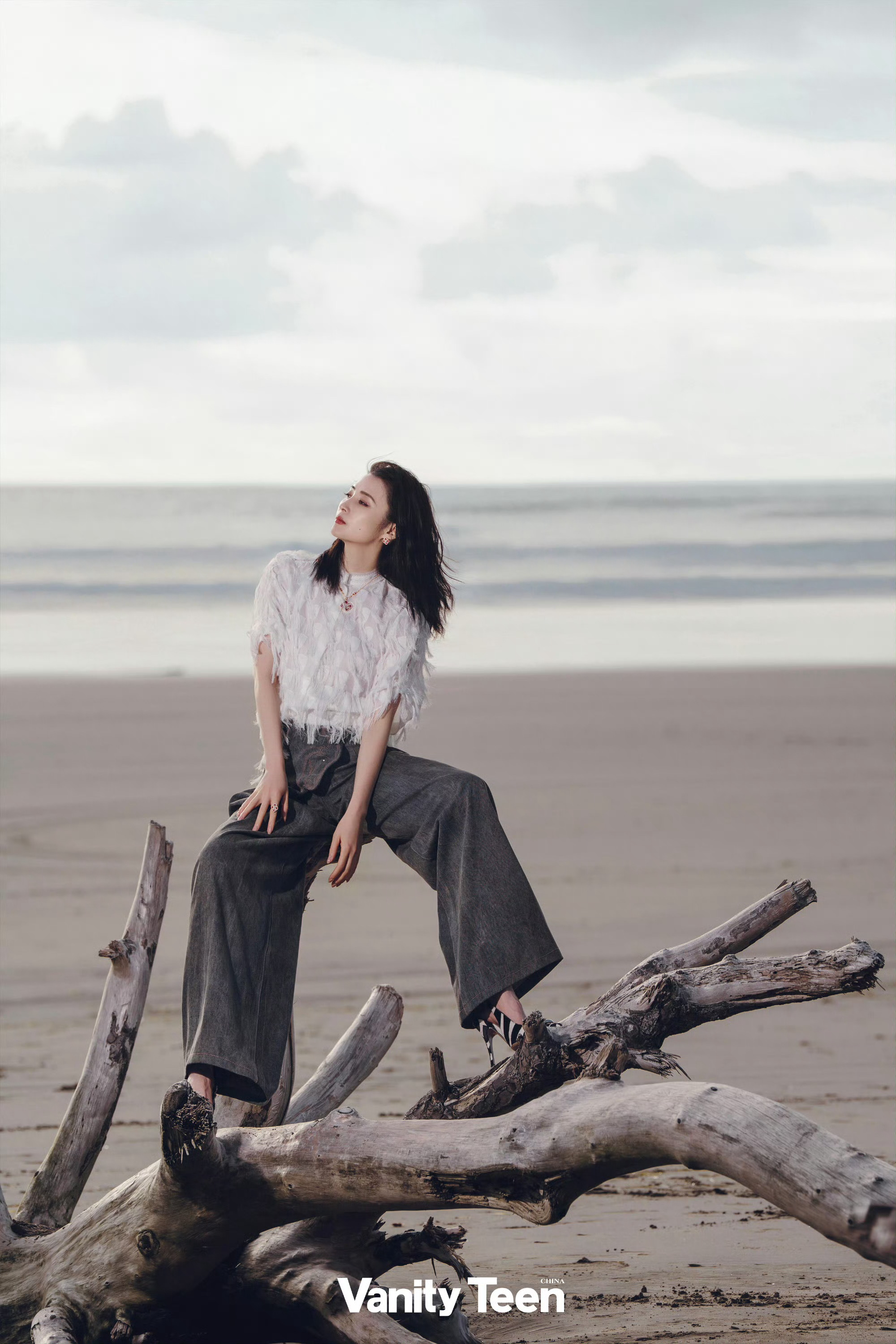 蒋勤勤海上神女造型这组图循环看真的不腻轻纱裙配海景是温柔神女,牛仔裤湿发是利落姐