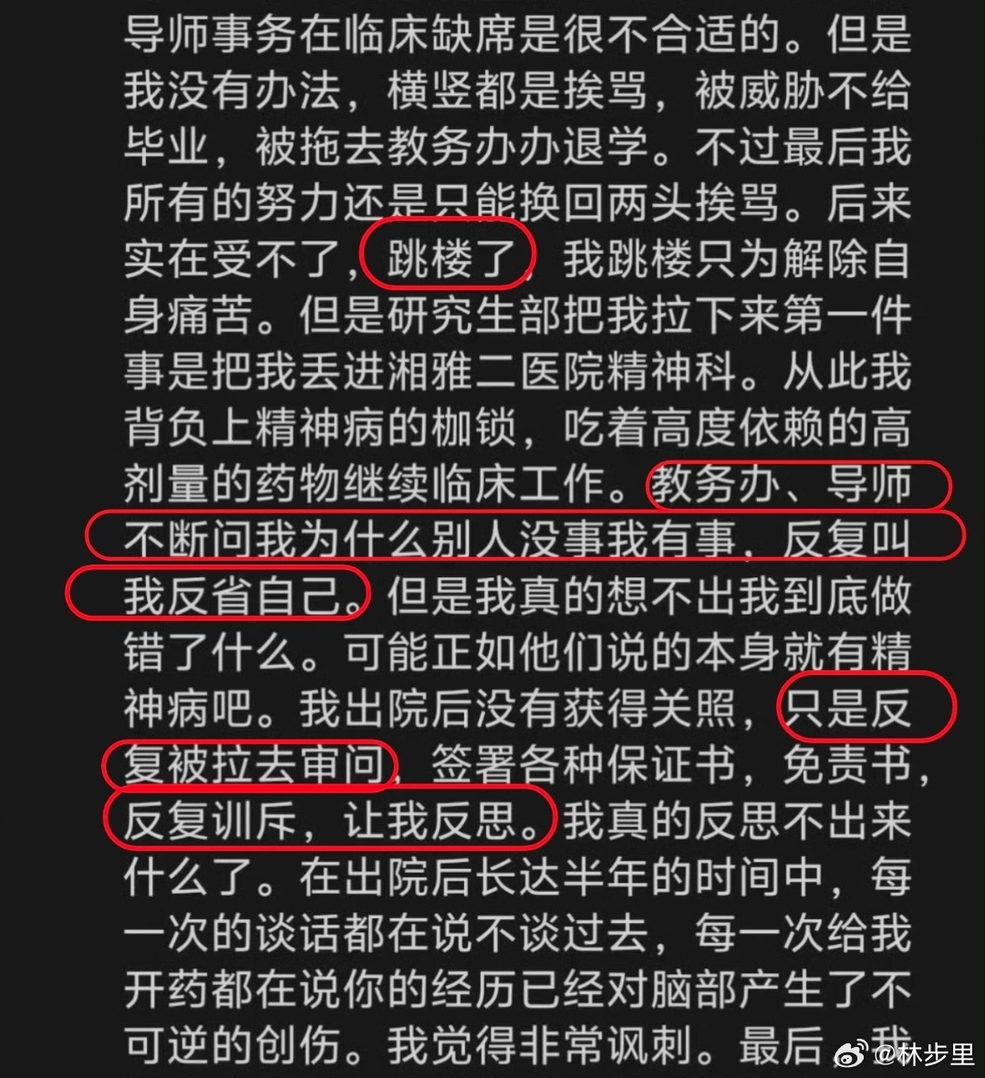 湘雅医院失联学生确认坠江身亡这位同学已经轻生过一次了,已经因此住过院了,她的导师与带教仍继续pua她。