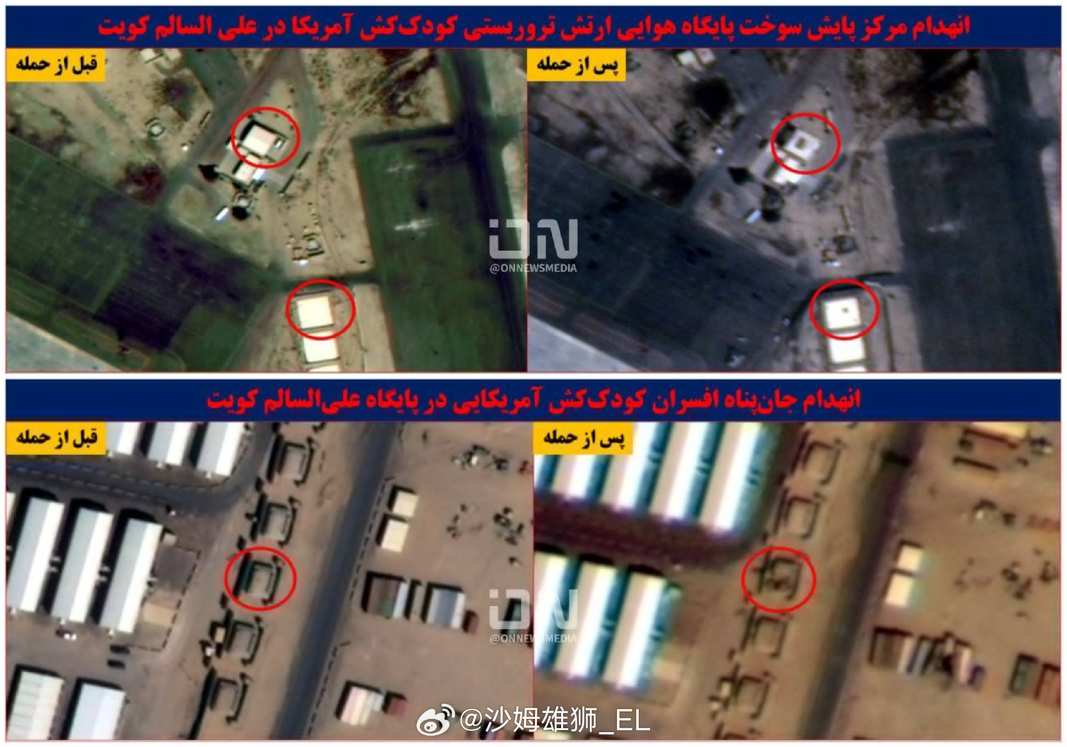 伊朗人新发布的一些展示其打击效果的卫星图像: