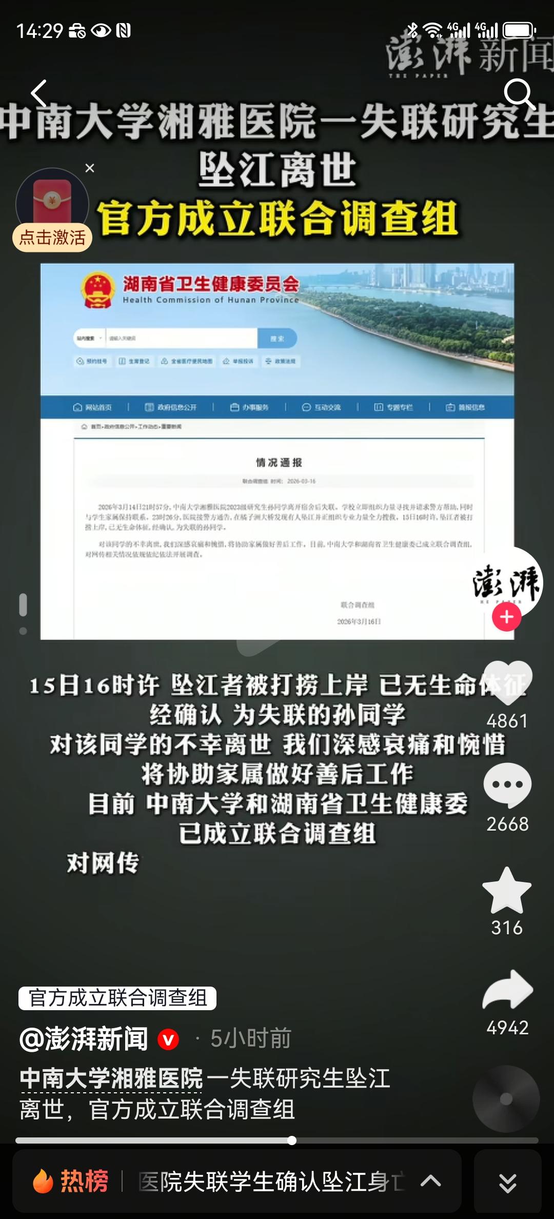 湘雅医院坠江的孙同学尸体已被打捞上来,随即她的朋友圈也被曝光了。 她说自己后悔做了两件事, 1、不该选择保研湘雅。 2、送错导师,她每天有做不完的科研课题。她的导师相当严格,只要没有达到要求,随时随地批评她。 这孙同学大不了休学啊!死都不怕,还怕什么,想想家里的父母,这么多年培养一个研究生多么不容易。
