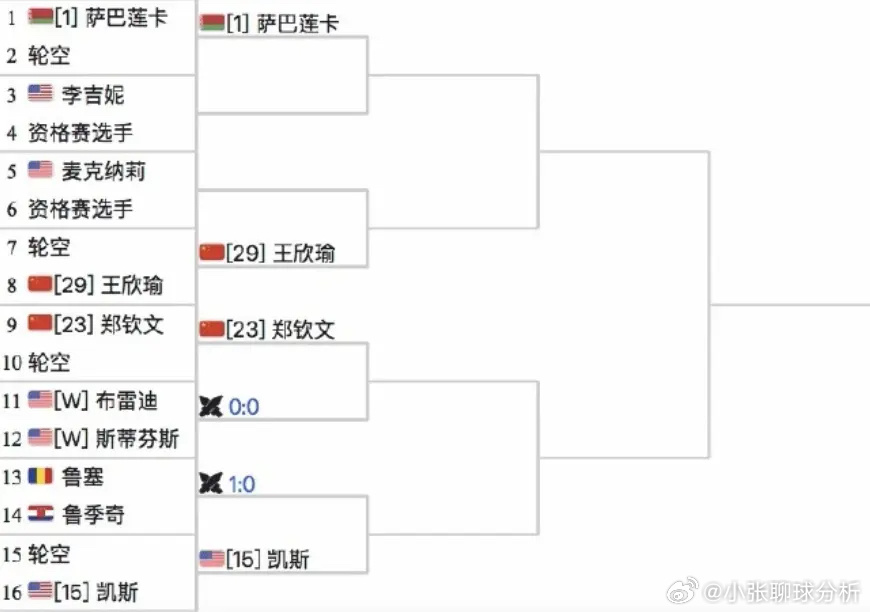 首轮比赛,郑钦文轮空,另一位中国金花王欣瑜同样首轮轮空。第二轮,郑钦文将将会对阵布雷迪和斯蒂芬斯之间的胜者。第三轮,郑钦文则将有望对阵凯斯。若能顺利闯入8强,郑钦文就会在1/4决赛中对阵大魔王萨巴伦卡。