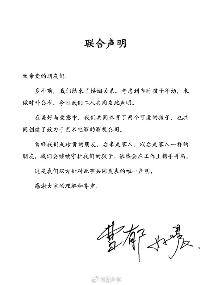 姚晨官宣与曹郁和平离婚,消息虽突然,却早已是彼此深思熟虑后的决定。为保护年幼孩子