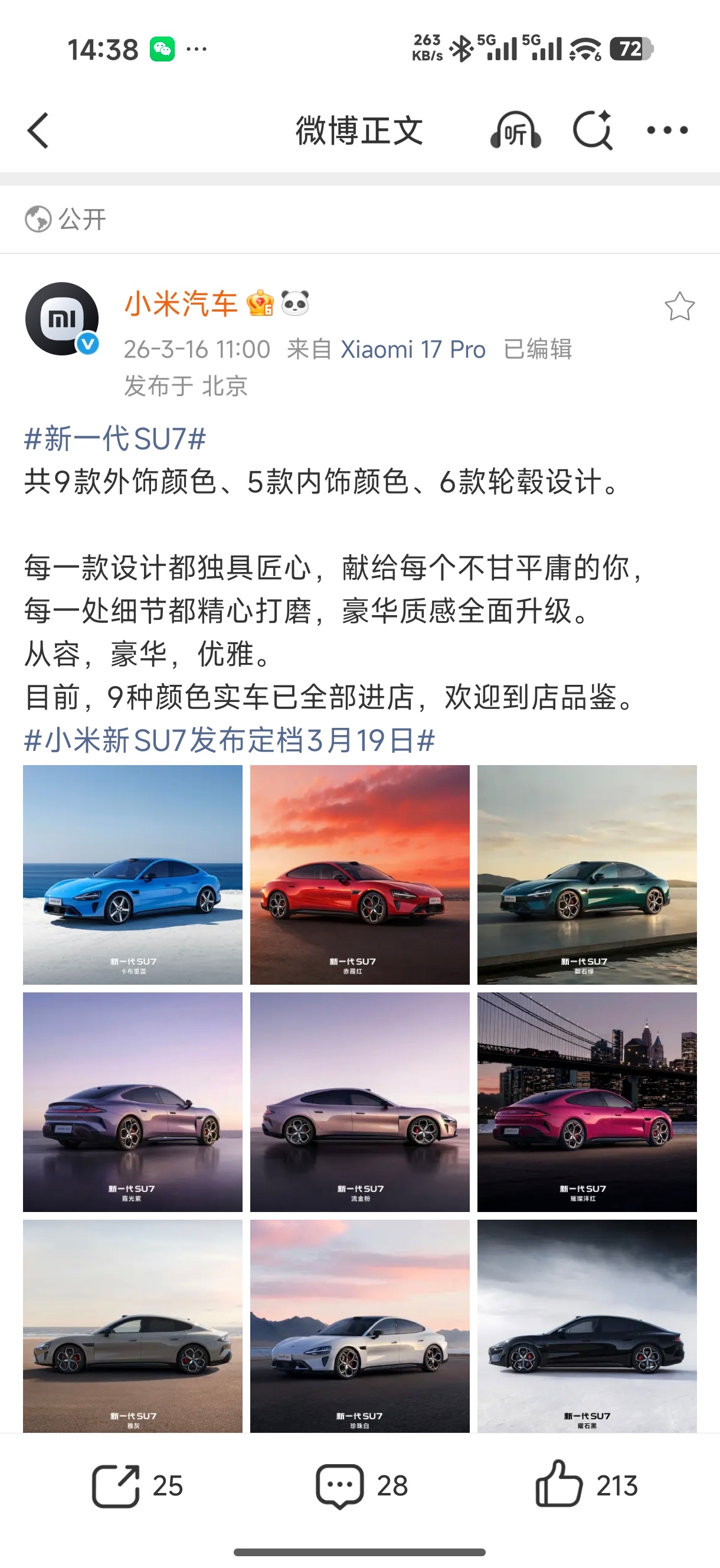 小米新SU7卡布里蓝特别版 我觉得这次新推出的卡布里蓝应该是一个爆款,实在是太吸晴了,高级感直接给你拉满,这颜色回头率完爆所有同价位对手!