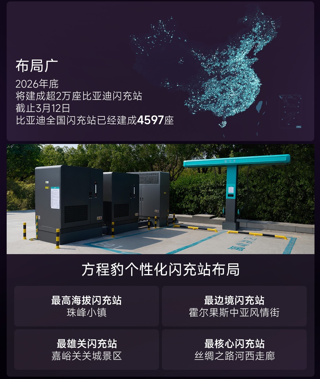 充得快、技术多,而且还能马上交付。整体看下来,方程豹钛3其实挺像一台把技术和体验都做得比较均衡的车,也难怪很多人说它是钛3闪充版26年最值得买的A级纯电精品车。如果最近在看新能源车,可以找时间去试驾一下,很多东西体验完就有答案了。方程豹个性化闪充站布局方程豹把闪充站建到珠峰脚下
