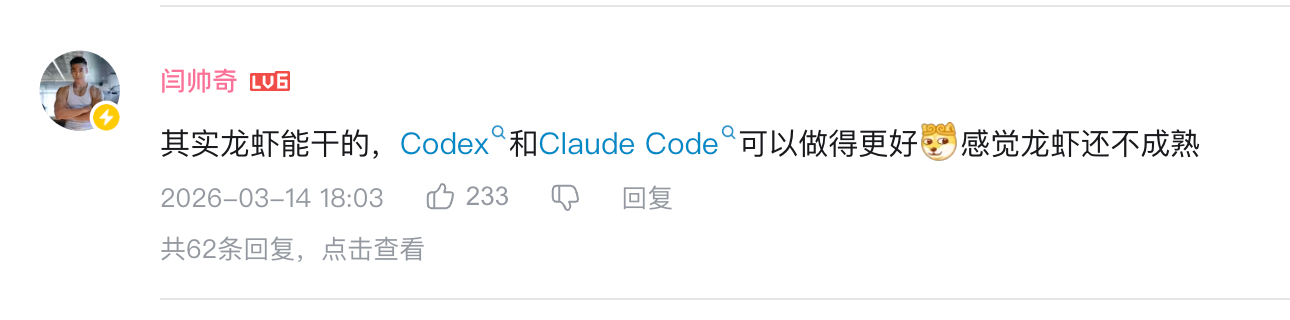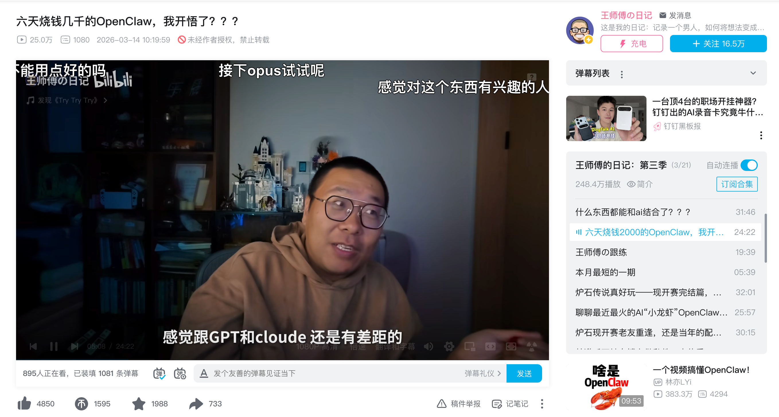 你能想象在 B 站刷到了前炉石主播讲 OpenClaw,评论区刷到健身博主的回复