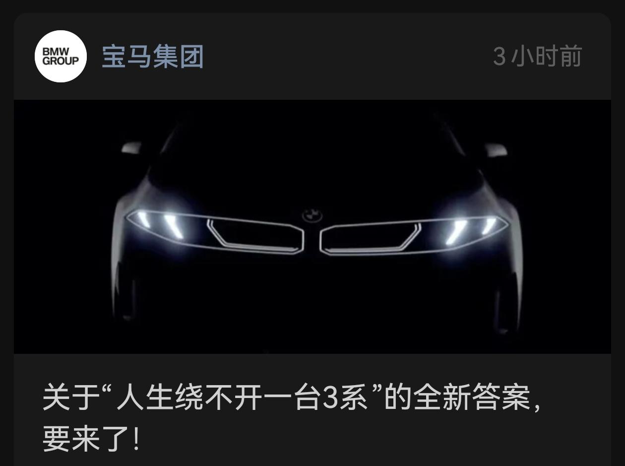 熟悉的文案:人生绕过不开一台3系。预告,3月18号,全新一代宝马i3全球首发【来自懂车帝车友圈】