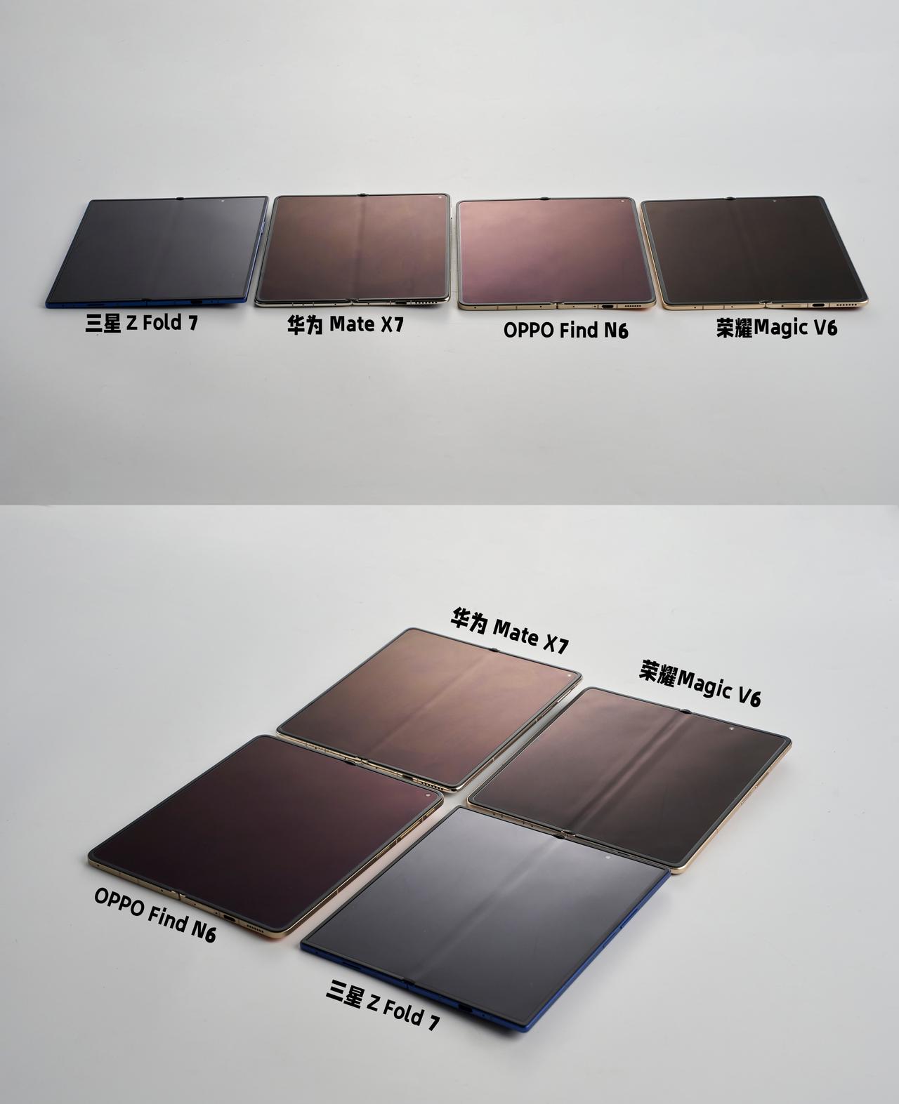 最近刷到OPPO Find N6的爆料,忍不住想说说折叠屏的折痕问题。 拿Find N6和华为Mate X7、荣耀Magic V6、三星Z Fold7简单对比了下。说实话,现在各家在平整度上都做得挺好了。不过侧着角度看,有些机型还是能隐约看到一点凹痕,尤其是屏幕全黑的时候。 Find N6这次倒是让我有点意外,正面侧面看都很难找到折痕,头顶打光也看不出来。据说用了和几家供应商联合研发的新技术,效果确实不错。 3月17号发布会,有人想一起蹲的吗?🙋♀️ OPPOFindN6 OPPO FindN6无感折痕 全球最平整折叠屏OPPOFindN6 iPhoneFold 苹果折叠屏 折叠屏手机 黑科技 前沿科技 数码大玩家 一起聊数码 手机新品