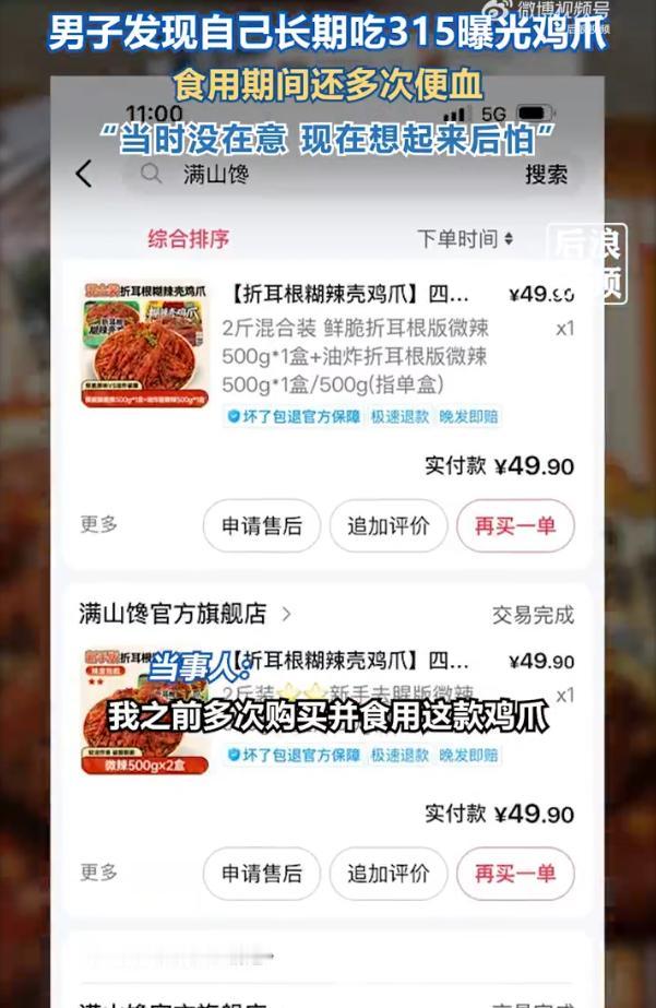 今年315后第一个受害者出现了!福建,一男子在网上吐槽,自己平时爱吃鸡爪,而且是