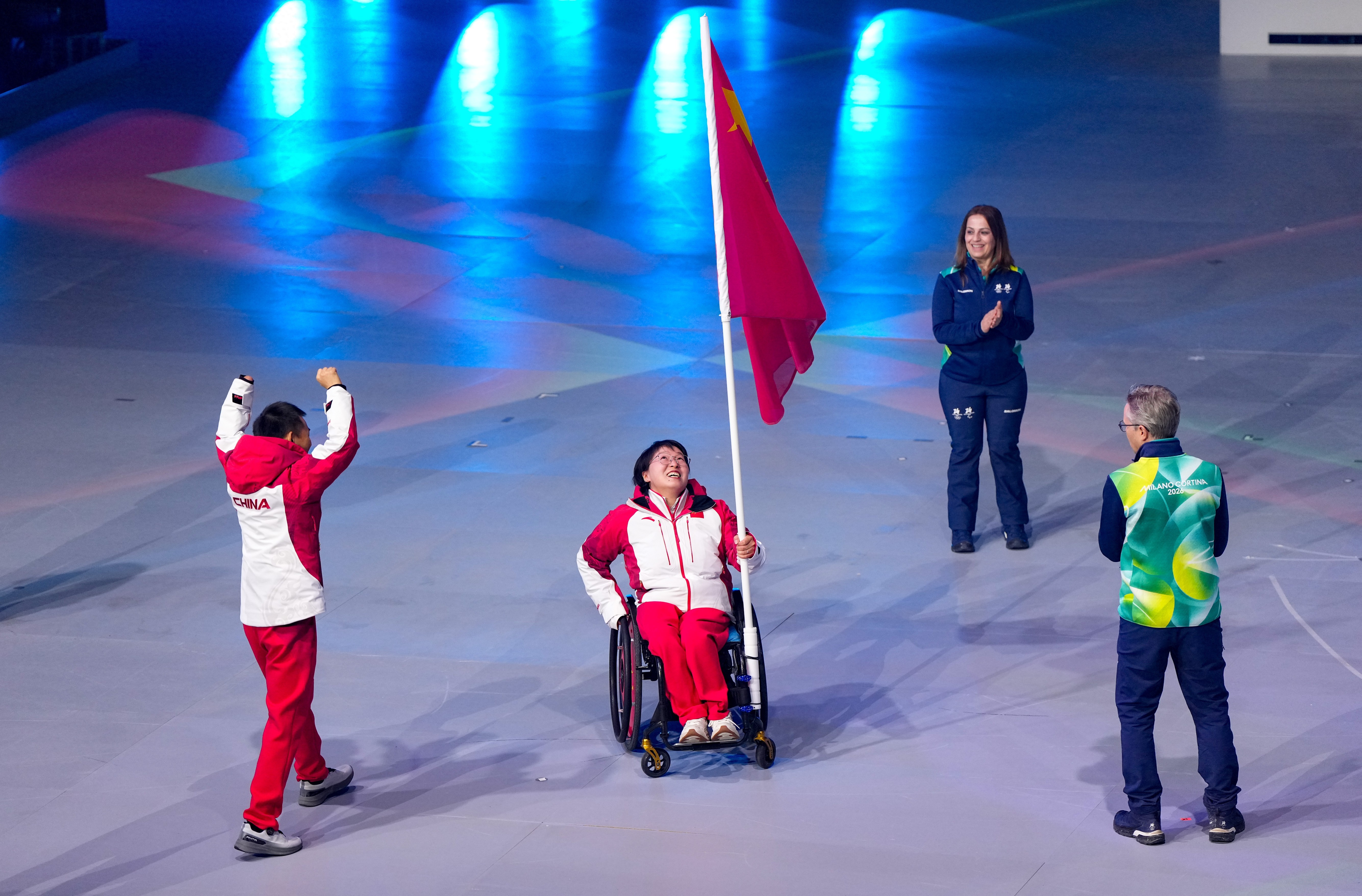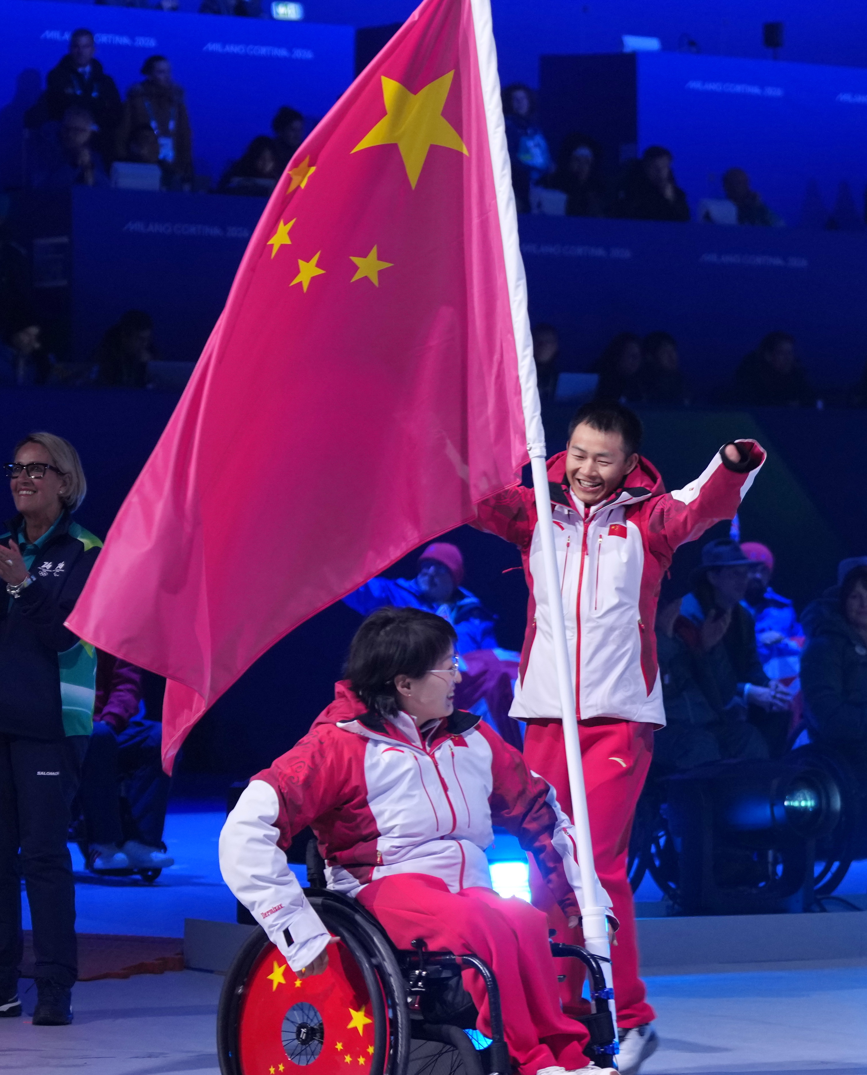 当地时间3月15日,2026年米兰-科尔蒂纳冬残奥会闭幕式在意大利科尔蒂纳丹佩佐,中国代表团旗手蔡佳云和王蒙在闭幕式上入场。中国残奥代表团取得了金牌榜和奖牌榜的双料第一!冬奥会 此刻皆不凡