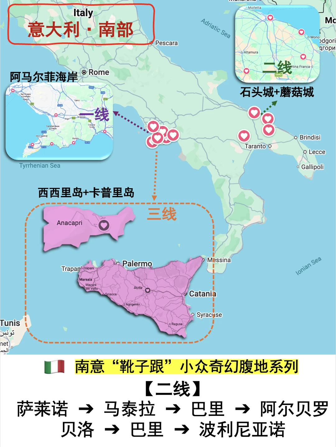 这是南意的第二条线路,第一条那不勒斯及阿马尔菲眼沿线的经典南意线路可以看之前的笔记